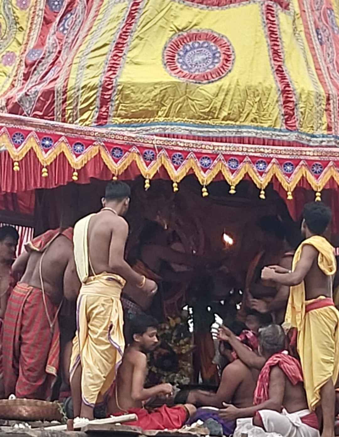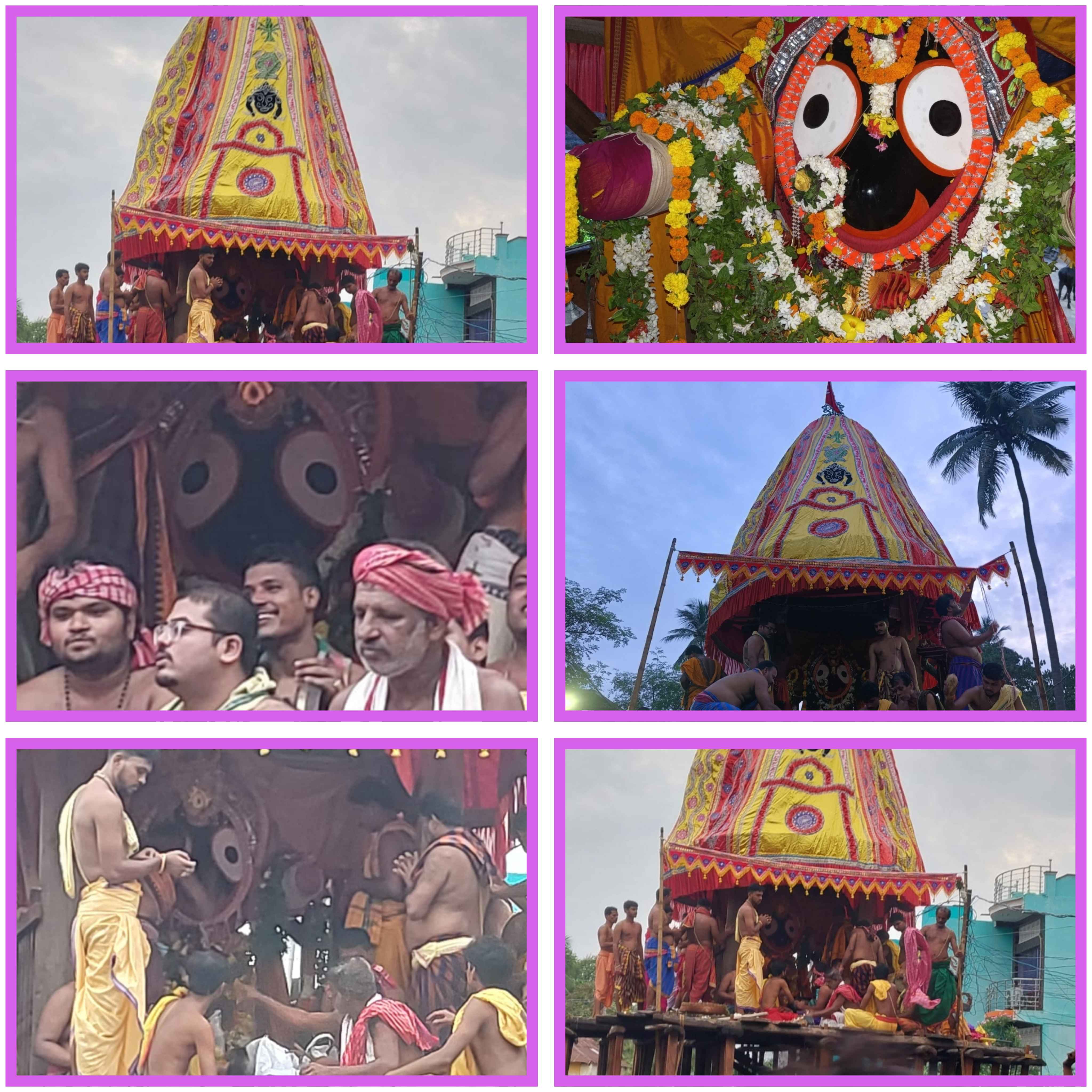 ତା --27/06/25:ପୁରୁଷୋତ୍ତମପୁର ସହର ମଧ୍ୟ ଭାଗରେ ଥିବା ରଥ ସାହି ନିକଟରେ ଅବସ୍ତିତ ପ୍ରଭୁ ଜଗତର ନାଥ ଜଗନ୍ନାଥ ଙ୍କ ସମସ୍ତ ରୀତି ନିତି ଅନୁସାରେ ପୂଜା, ବେଶ ହୋଇ ବାହାରକୁ ବାହାରି ଥିଲେ ଏବଂ ବାହାରେ ବିରାଟ ଟାହିଆ ଲଗାଇ ଅପରାହ୍ନ ସାଢ଼େ ଚାରି ଘଣ୍ଟ ସମୟରେ ମନ୍ଦିର ଆଗରୁ ସେବକମାନଙ୍କ ଦ୍ୱାରା ଘଣ୍ଟ, ମୃଦଙ୍ଗ, କାହାଳି ଓ ଗିନି ର ତାଳେ ତାଳେ ପତିତ ପାବନ ଙ୍କୁ ପହଣ୍ଡିରେ ଝୁଲାଇ, ଝୁଲାଇ ରଥ ପର୍ଯ୍ୟନ୍ତ ନିଆ ଯାଇଥିଲେ | ଏବଂ ରଥଚାରିପଟେ ବୁଲାଇ ରଥ ଉପରେ ବିଜେ କରାଇ ଥିଲେ | ଭକ୍ତ ମାନେ ଠାକୁରଙ୍କ ଦଉଡିକୁ ଟାଣି, ଟାଣି, ମାଉସୀ ମାଆ ମନ୍ଦିର ପର୍ଯ୍ୟନ୍ତ ନେଇଥିଲେ | ରଥ ଉପରେ ଠାକୁରଙ୍କ ଶୁଖିଲା ଭୋଗ, ଆଳତି,ପରେ ମାଉସୀ ମାଆ ମନ୍ଦିର ଭିତର କୁ ପହଣ୍ଡିରେ ଯାଇ ଥିଲେ | ଏହି ଯାତ୍ରା କୁ ମନ୍ଦିର ପରିଚାଳନା ସଭାପତି,ଙ୍କ ସହ କମିଟି, ସେବକ, ପଣ୍ଡା, ପଡିହାରୀ ଓ ରଥ ସାହି ବାସିନ୍ଦା, ଭକ୍ତ, ଓ ସହର ର କିଛି ବ୍ୟକ୍ତି ବିଶେଷ, ଥାନା ଷ୍ଟାଫ ଯୁବ ବର୍ଗ ମାନେ ସହଯୋଗ କରିଥିଲେ | ରଥ ଯାତ୍ରାରେ ପୁରୁଷୋତ୍ତମପୁର ତହସିଲଦାର ବିନୋଦ କୁମାର ବେହେରା ଉପସ୍ଥିତ ହୋଇ ଜଗନ୍ନାଥ ଙ୍କ ଆଶୀର୍ବାଦ ଭିକ୍ଷା କରି ସହର ତଥା ଜଗତର ମଙ୍ଗଳ କାମନା କରିଥିଲେ | ଏବଂ ଠାକୁରଙ୍କ ଅପାର କୃପାରୁ ଏବଂ ସମସ୍ତ ଙ୍କ ସହଯୋଗ ରେ ଠାକୁରଙ୍କ ଗୁଣ୍ଡିଚା ଯାତ୍ରା ସୁରୁଖୁରୁ ରେ ଶେଷ ହୋଉ ଥିଲା |