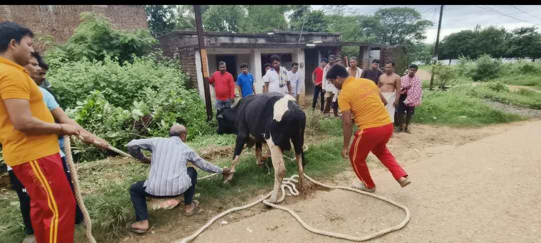 ଡ୍ରେନରୁ ଦମକଳବାହିନୀ ଦ୍ବାରା ଷଣ୍ଢ ଉଧାର,