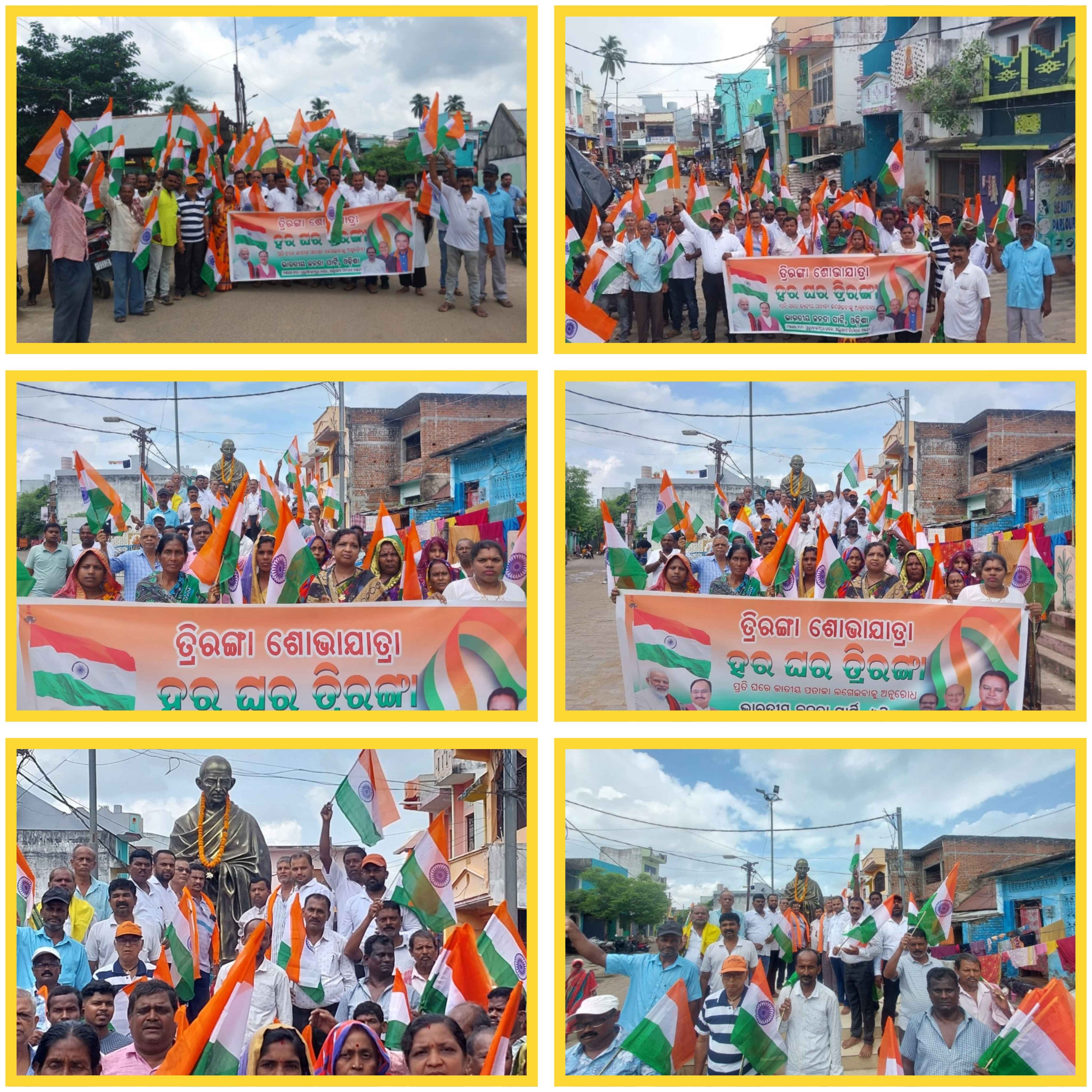 ପୁରୁଷୋତ୍ତମପୁର ସହରରେ ସ୍ଥାନୀୟ ଭାରତୀୟ ଜନତା ଦଳ ତରଫରୁ ଏକ ତ୍ରିରଙ୍ଗା ଶୋଭାଯାତ୍ରା ଜଗନ୍ନାଥ ମନ୍ଦିର ପ୍ରଙ୍ଗଣରୁ ସ୍ଥାନୀୟ ବିଧାୟକଙ୍କ ପ୍ରତିନଧି ସୁଦର୍ଶନ ବେହେରାଙ୍କ ପ୍ରତିନିଧିତ୍ବରେ ଆରମ୍ଭ କରାଯାଇଥିଲା |ଏହି ଶୋଭାଯାତ୍ରା ରଥସହି ଛକ ଦେଇ ସ୍ଥାନୀୟ ବଡ ବଜ଼ାର ହୋଇ ଶେଷରେ ବଜ଼ାର ମଧ୍ୟରେ ଥିବା ଜାତିର ପିତା ମହାତ୍ମା ଗାନ୍ଧୀଙ୍କ ଠାରେ ଶେଷ ହୋଇଥିଲା |ଏହିଠାରେ ମହାତ୍ମା ଗାନ୍ଧୀଙ୍କ ଉପରେ ପୁଷ୍ପମାଲ୍ୟ ଦେଇ ପୁଣି ଶୋଭାଯାତ୍ରା ଜଗନ୍ନାଥ ମନ୍ଦିର ପ୍ରାଙ୍ଗଣରେ ପହଂଚି ଏହାକୁ ସମାପନ କରାଯାଇଥିଲା | କର୍ମୀ ମାନେ ବିଭିନ୍ନ ଦେଶାତ୍ମବୋଧକ ସ୍ଲୋଗାନ ଦେଇ ଏବଂ ହର ଘର ତ୍ରିରଙ୍ଗା ନାରା ଦେଇ ପଦଯାତ୍ରା କରିଥିଲେ | ଏହି ଶୋଭାଯାତ୍ରା ରେ ପୁରୁଷୋତ୍ତମପୁର ନଗରପାଳ କୃଷ୍ଣ ଚନ୍ଦ୍ର ପଣ୍ଡା,ମନୋଜ କୁମାର ମହାପାତ୍ର,କୃଷ୍ଣ ଚନ୍ଦ୍ର ନାୟକ,ସନ୍ତୋଷ କୁମାର ପଣ୍ଡା,ଗୋବିନ୍ଦ ଗୌଡ଼,ଲିଙ୍ଗରାଜ ବେହେରା,ବିଶ୍ୱଭୂଷଣ ମହାପାତ୍ର,ଭବାନୀ କୁମାର ନାୟକ,ଲୋକନାଥ ବେହେରା,ରଞ୍ଜନ କୁମାର ବେହେରା, ବିପ୍ର ଚରଣ ବେହେରା,ଭାସ୍କର ବେହେରା,ଟୁକୁନା ବେହେରା,ଦେବରାଜ ବେହେରା,ସୁରେଶ କୁମାର ମହାନ୍ତି,ଶ୍ୟାମବାବୁ ଦୋରା ଆଦି କର୍ମକର୍ତ୍ତାଙ୍କ ସହ ମହିଳା କର୍ମକର୍ତା ମାନେ ମଧ୍ୟ ଉପସ୍ଥିତ ରହିଥିଲେ |କର୍ମୀମାନେ ଜାତିର ପ୍ରତୀକ ତ୍ରିରଙ୍ଗାକୁ ଗର୍ବ ସହିତ ପ୍ରତ୍ୟେକ ଘରରେ ପତାକାରୋହଣ କରିବା ପାଇଁ ଉତ୍ସହାହିତ କରିଥିଲେ |