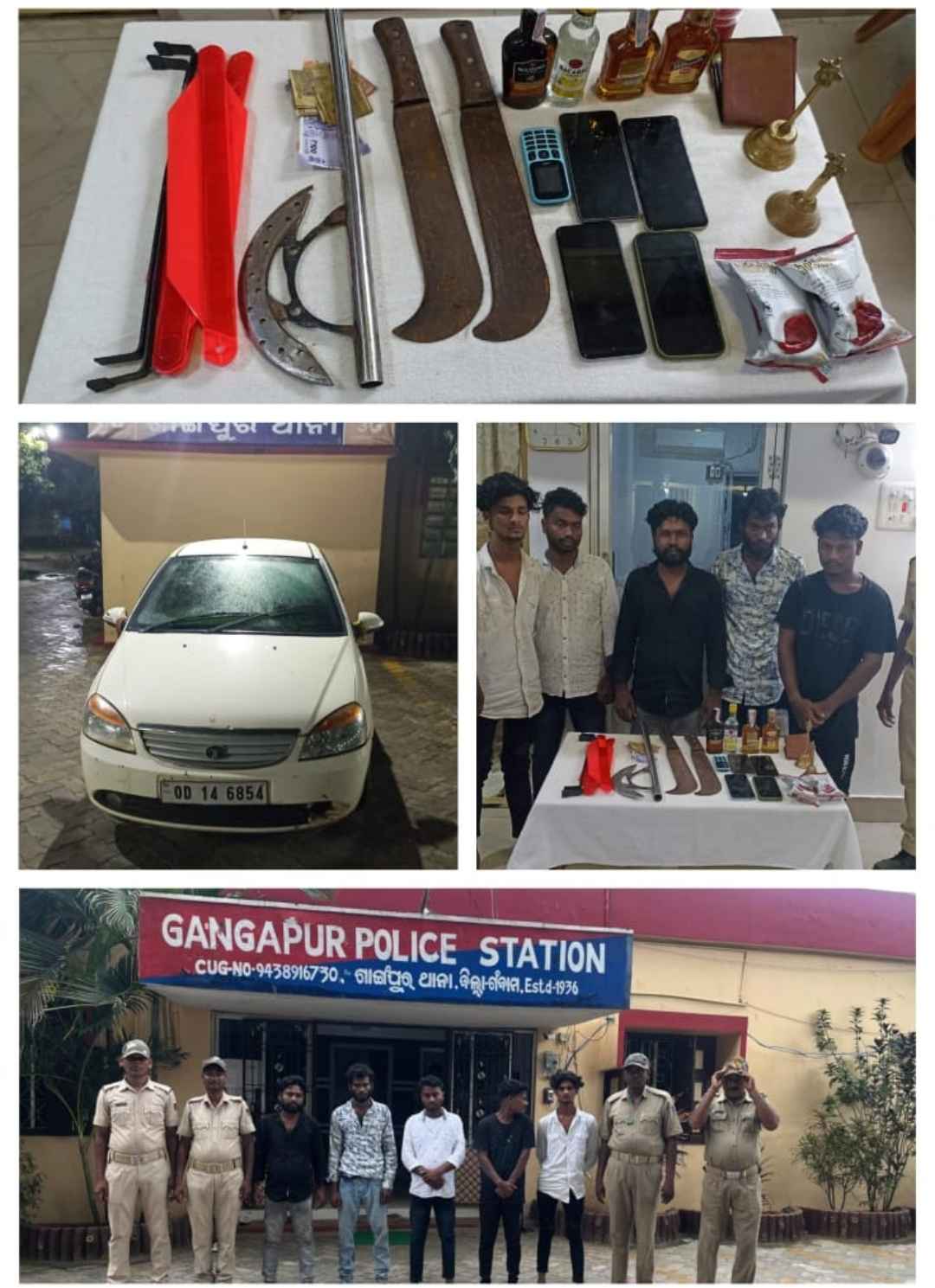 ଡ଼କାୟତି ଯୋଜନା କରୁ୍ଥିବା ବେଳେ ଏକ ପାଞ୍ଚ ଜଣିଆ ଡକାୟତ ଗ୍ୟାଙ୍ଗ୍ କୁ କାବୁ କରିବାକୁ ସକ୍ଷମ ହୋଇଛି ଗାଙ୍ଗପୁର ପୋଲିସ୍ I ସୂଚନା ପ୍ରକାରେ ଗତକାଲି ଅର୍ଥାତ୍ ସୋମବାର ରାତି ସମୟରେ ମାଆ ବୁଢାକେନ୍ଦୁ ମନ୍ଦିର ପରିସରରେ ଏକ ଡକାୟତ ଗ୍ୟାଙ୍ଗ୍ ଗାଙ୍ଗପୁର ଥାନା ଅଞ୍ଚଳରେ ଡ଼କାୟତି ଯୋଜନା କରୁ୍ଥିବା ନେଇ ଗାଙ୍ଗପୁର ଥାନା ଅଧିକାରୀ ବନବିହାରୀ ପ୍ରଧାନ ଏକ ବିଶ୍ୱସ୍ତ ସୂତ୍ରରୁ ଖବର ପାଇଥିଲେ I ଏନେଇ ସେ ଥାନା ଏଏସ୍ଆଇ ୱାଇ.ବି ନାଇଡ଼ୁଙ୍କ ନେତୃତ୍ୱରେ ଏକ ଟିମ୍ କୁ ଘଟଣାର ଅନୁସନ୍ଧାନ କରିବା ପାଇଁ ନିର୍ଦ୍ଦେଶ ଦେଇଥିଲେ I ଏଏସ୍ଆଇ ୱାଇ.ବି ନାଇଡ଼ୁଙ୍କ ନିଜ ଟିମ୍ ସହିତ ମାଆ ବୁଢାକେନ୍ଦୁ ମନ୍ଦିର ପହଞ୍ଚି ଦେଖିଲେ ଏକ ପାଞ୍ଚ ଜଣିଆ ଗ୍ୟାଙ୍ଗ୍ ମନ୍ଦିର ବାହାରେ ସନ୍ଦେହ ଜନକ ଅବସ୍ଥାରେ ବସିଥିବା ବେଳେ ସେମାନଙ୍କ ନିକଟରେ ଏକ ଧଳା ରଙ୍ଗର ଇଣ୍ଡିଗୋ କାର୍ ଅଛି I ପୋଲିସ୍ କୁ ଦେଖି ସେଠାରେ ବସିଥିବା ପାଞ୍ଚ ଜଣ ଦୌଡ଼ି ପଳାଇବାକୁ ଚେଷ୍ଟା କରିଥିବା ବେଳେ ପୋଲିସ୍ ଟିମ୍ ସେମାନଙ୍କୁ କାବୁ କରିନେଇଥିଲେ I କାର୍ ର ଡିକି ଯାଞ୍ଚ୍ ବେଳେ ସେଥିରୁ ଏକ ବଡ଼ ଲୁହା କାତି, ଗୋଟିଏ ଫାର୍ସା,ବିଦେଶୀ ମଦ ବୋତଲ, ଲଙ୍କା ଗୁଣ୍ଡ ଇତ୍ୟାଦି ଥିଲା।