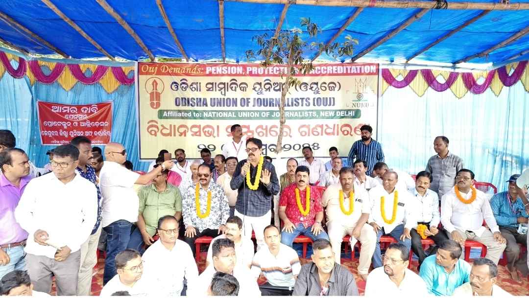 ଓଡ଼ିଶା ସାମ୍ବାଦିକ ସଂଘ (ଓୟୂଜେ) ପକ୍ଷରୁ ବିଭିନ୍ନ ଦାବି ନେଇ ରାଜ୍ୟ ବିଧାନସଭା ଚାଲିଥିବା ଦିବସ ମଧ୍ୟରେ ବିଧାନସଭା ସମ୍ମୁଖରେ ଏକ ଗଣଧାରଣା କାର୍ଯ୍ୟକ୍ରମ ସଫଳତାର ସହିତ ସମାପ୍ତ ହୋଇଥିଲା। ରାଜ୍ୟ ସଭାପତି ପ୍ରସନ୍ନ ମହାନ୍ତିଙ୍କ ନେତୃତ୍ୱରେ ଚାଲିଥିବା କାର୍ଯ୍ୟକ୍ରମରେ ରାଜ୍ୟର ୩୦ ଗୋଟି ଜିଲ୍ଲା ଶାଖା ଗୁଡିକରୁ ୫ ଶହରୁ ଊର୍ଦ୍ଧ୍ବ ସାମ୍ବାଦିକମାନେ ଆସି ଧାରଣାରେ ଯୋଗଦେଇଥିବାର ଦେଖିବାକୁ ମିଳିଥିଲା। ମୁଖ୍ୟତ ସାମ୍ବାଦିକଙ୍କୁ ଭତ୍ତା,ସୁରକ୍ଷା ଓ ଅଧିସ୍ଵିକୃତି ପ୍ରଦାନକୁ ନେଇ ସଂଘ ତରଫରୁ କରାଯାଇଥିବା ଧାରଣା କାର୍ଯ୍ୟକ୍ରମରେ ବିରୋଧୀ କଂଗ୍ରେସ ନେତା ଜୟପୁର ବିଧାୟକ ତାରାପ୍ରସାଦ ବାହିନୀପତିଙ୍କ ସମେତ ବିଜେଡିର ଅରୁଣ ସାହୁ,ଅନନ୍ତ ନାରାୟଣ ଜେନା,ସଞ୍ଜୀବ ମଲ୍ଲିକ,ରୋମାଞ୍ଚ ରଂଜନ ବିଶ୍ବାଳ,ସାରଦା ଜେନା,ପ୍ରଦୀପ ସାହୁ,ମାଧବ ଧଡା,ରୁପେଶ ପାଣିଗ୍ରାହୀ ପ୍ରମୁଖ ଯୋଗଦେଇ ସଂଘ ତରଫରୁ କରାଯାଇଥିବା ଆନ୍ଦୋଳନ ସମେତ ଉକ୍ତ ୩ ଗୋଟି ଯଥୋଚିତ ଦାବିକୁ ସମର୍ଥନ ଜଣାଇବା ସହିତ ନିଜର ନୈତିକ ସମର୍ଥନ ଦେବା ଏଵଂ ବିଧାନସଭାରେ ବିଷୟକୁ ବଳିଷ୍ଠ ଭାବରେ ଉଠାଇବାକୁ ପ୍ରତିଶୃତି ଦେଇଥିବାବେଳେ ବିରୋଧୀ ଦଳ ମୁଖ୍ୟ ସଚେତକ ପ୍ରମିଳା ମଲ୍ଲିକ ମଧ୍ୟ ବିଧାନସଭାରେ ସରକାରଙ୍କ ଦୃଷ୍ଟି ଆକର୍ଷଣ କରିବା ସହିତ ଅବିଳମ୍ବେ ଏ ଦିଗରେ ଉଚିତ୍ ବ୍ୟବସ୍ଥା ନେବାକୁ ଦାବି କରିଥିଲେ। ଏଥିସହ ବିଧାୟକ ଭାସ୍କର ମଡେଇ ସାମ୍ବାଦିକ ସଂଘର ଦାବୀ ଉପରେ ଆଲୋଚନା କରିଥିଲେ। ଧାରଣାବେଳେ ବରିଷ୍ଠ ସାମ୍ବାଦିକ ରବିଦାସ,ଉପସଭାପତି ରାଜେଶ ପଟ୍ଟନାୟକ, କିଶାନ ରାଉତ୍,ପ୍ରମୋଦ ସାମନ୍ତରାୟ,ସମ୍ପାଦକ ପ୍ରସନ୍ନ ପାଇକରାୟ,କୋଷାଧ୍ୟକ୍ଷ ଅମୂଲ୍ୟ ସ୍ୱାଇଁ,ସ°ଯୋଜକ ସନ୍ତୋଷ ସି°ଦେଓ,ଦେବପ୍ରସାଦ ଦାସ, ବଦ୍ରି ନାରାୟଣ ମିଶ୍ର,ଆଦିତ୍ୟ ମେକାପ, ରୂପେଶ ସାହୁ,ରାମନାରାୟଣ ଶତପଥୀ,ଗଂଜାମ ଜିଲ୍ଲା ସାମ୍ବାଦିକ ସଂଘ ସଭାପତି ସଦାଶିବ ପଣ୍ଡା ପ୍ରମୁଖ ଉପସ୍ଥିତ ରହି ଉଦବୋଧନ ଦେବାସହିତ ସାମ୍ବାଦିକମାନଙ୍କ ନ୍ୟାଯ୍ୟଦାବିକୁ ସରକାର ତୁରନ୍ତ ମାନିନେଇ ବିଚାରପୂର୍ବକ ଉପଯୁକ୍ତ ପଦକ୍ଷେପ ନେବେ ବୋଲି ଆଶା ପୋଷଣ କରିଥିଲେ। ପରେ ରାଜ୍ୟ ସଂଘ ସଭାପତି ପ୍ରସନ୍ନ ମହାନ୍ତିଙ୍କ ନେତୃତ୍ୱରେ ଏକ ପ୍ରତିନିଧିଦଳ ମୁଖ୍ୟମନ୍ତ୍ରୀ ମୋହନ ଚରଣ ମାଝୀଙ୍କୁ ଭେଟି ବିଭିନ୍ନ ରାଜ୍ୟରେ ସାମ୍ବାଦିକଙ୍କୁ ମିଳୁଥିବା ପେନସନ୍ ରାଶିର ଏକ ତୁଳନାତ୍ମକ ଚିତ୍ରଥିବା ସ୍ମାରକପତ୍ର ମୁଖ୍ୟମନ୍ତ୍ରୀଙ୍କୁ ପ୍ରଦାନ କରିଥିଲେ। ଦାବିପତ୍ର ଗ୍ରହଣକରି ମୁଖ୍ୟମନ୍ତ୍ରୀ ଆଶ୍ଵାସନା ଦେବାସହ ସାମ୍ବାଦିକମାନଙ୍କ ଦାବିଗୁଡିକୁ ନେଇ ଉପଯୁକ୍ତ ସମୟ ଠିକ୍ ନିଷ୍ପତି ନିଆଯିବ ବୋଲି ପ୍ରତିଶୃତି ଦେବାପରେ ସଂଘ ପକ୍ଷରୁ ଚାଲୁଥିବା ଧାରଣାକୁ ବନ୍ଦ କରାଯାଇଥିଲା। ଧାରଣା କାର୍ଯ୍ୟକ୍ରମରେ ଗଂଜାମ ଜିଲ୍ଲା ପୂର୍ବତନ ସଭାପତି ପ୍ରକାଶ ପାଣିଗ୍ରାହୀଙ୍କ ତତ୍ବାବଧାନରେ ଏଵଂ ଜିଲ୍ଲା ସଭାପତି ସଦାଶିବ ପଣ୍ଡାଙ୍କ ନେତୃତ୍ୱରେ ଜାତୀୟ କାର୍ଯ୍ୟକାରିଣୀ ସଦସ୍ୟ ବାଳକୃଷ୍ଣ ପଟ୍ଟନାୟକ,ଜିଲ୍ଲା ସାଧାରଣ ସମ୍ପାଦକ ସନ୍ତୋଷ କୁମାର ମିଶ୍ର,ସମ୍ପାଦକ ମେଘନାଦ ଦାସ ଓ ସନ୍ତୋଷ କୁମାର ପଣ୍ଡା ପୂର୍ବତନ ଜିଲ୍ଲା ସଭାପତି ତଥା ଉପଦେଷ୍ଟା ହରିହର ପାତ୍ର,ଶଙ୍କର ପ୍ରସାଦ ପ୍ରଧାନ,ସୂର୍ଯ୍ୟନାରାୟଣ ପାଣିଗ୍ରାହୀ, ଶ୍ରୀପଦ ଦାସ,ସୁଶାନ୍ତ କୁମାର ସାହୁ, ଅଜିତ କ