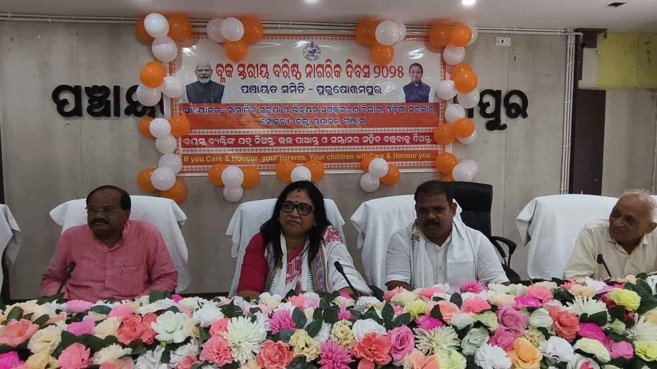 ପୁରୁଷୋତ୍ତମପୁର ବ୍ଲକ ବୈଠକ ହଲରେ ଆଜି ଅନ୍ତର୍ଜାତୀୟ ବରିଷ୍ଟ ନାଗରିକ ଦିବସ ବ୍ଳକ ଅଧକ୍ଷା ପିଙ୍କି ବେହେରା ଓ ବିଡ଼ିଓ ଶରତ ଚନ୍ଦ୍ର ପାତ୍ର ଙ୍କ ମିଳିତ ସଂଯୋଜନା ରେ ଆରମ୍ଭ କରାଯାଇଥିଲା | ଏହି କାର୍ଯ୍ୟକ୍ରମ ରେ ମୁଖ୍ୟ ଅତିଥି ଭାବେ ଆସ୍କା ଏମପି ଅନୀତା ଶୁଭ ଦର୍ଶିନୀ, ଖଲ୍ଲିକୋଟ ବିଧାୟକ ପୂର୍ଣ୍ଣ ଚନ୍ଦ୍ର ସେଠୀ, ଓ କବିସୂର୍ଯ୍ୟ ନଗର ବିଧାୟକ ପ୍ରତାପ ଚନ୍ଦ୍ର ନାୟକଙ୍କ ସହିତ ବ୍ଳକ ଅଧକ୍ଷା ଏବଂ ବିଡ଼ିଓ ମଞ୍ଚାସିନ ଥିଲା ବେଳେ ସାମ୍ନାନୀତ ଅତିଥି ଭାବେ ବରିଷ୍ଠ ନାଗରିକ ସଂଘର ସମ୍ପାଦକ ପ୍ରଫୁଲ୍ଲ କୁମାର ରଥ ମଞ୍ଚାସିନ ରହି ପ୍ରଥମେ ଠାକୁରଙ୍କ ପାଖେ ପ୍ରଦୀପ ପ୍ରଜ୍ବଳନ କରି ଏହି ଅନ୍ତର୍ଜାତୀୟ ବରିଷ୍ଟ ନାଗରିକ ଦିବସ ଙ୍କୁ ପାଳନ କରିଥିଲେ | ଉପସ୍ଥିତ ବରିଷ୍ଟ ନାଗରିକ ଙ୍କ ନିମନ୍ତେ କିଛି ସୂଚନା ପ୍ରଦାନ କରିବା ସହ ସେମାନଙ୍କ ଜୀବନ କିପରି ଦୁର୍ବିସହ ହୋଇ ପଡୁଛି, ଏବଂ ସେମାନଙ୍କ ପିଲାମାନେ ସେମାନଙ୍କୁକିପରି ଶେଷ ସମୟ ରେ ବୃଦ୍ଧା ଶ୍ରମ ରେ ରଖୁଛନ୍ତି, ସେମାନଙ୍କୁ ବହୁତ ନିର୍ଯ୍ୟାତନା ଦେଉଛନ୍ତି ତାର ନିରାକରଣ ଉପରେ ପିଲାମାନଙ୍କୁ ଉପଦେଶ ର ବାର୍ତ୍ତା ଅତିଥି ମାନେ ଦେଇଥିଲେ |