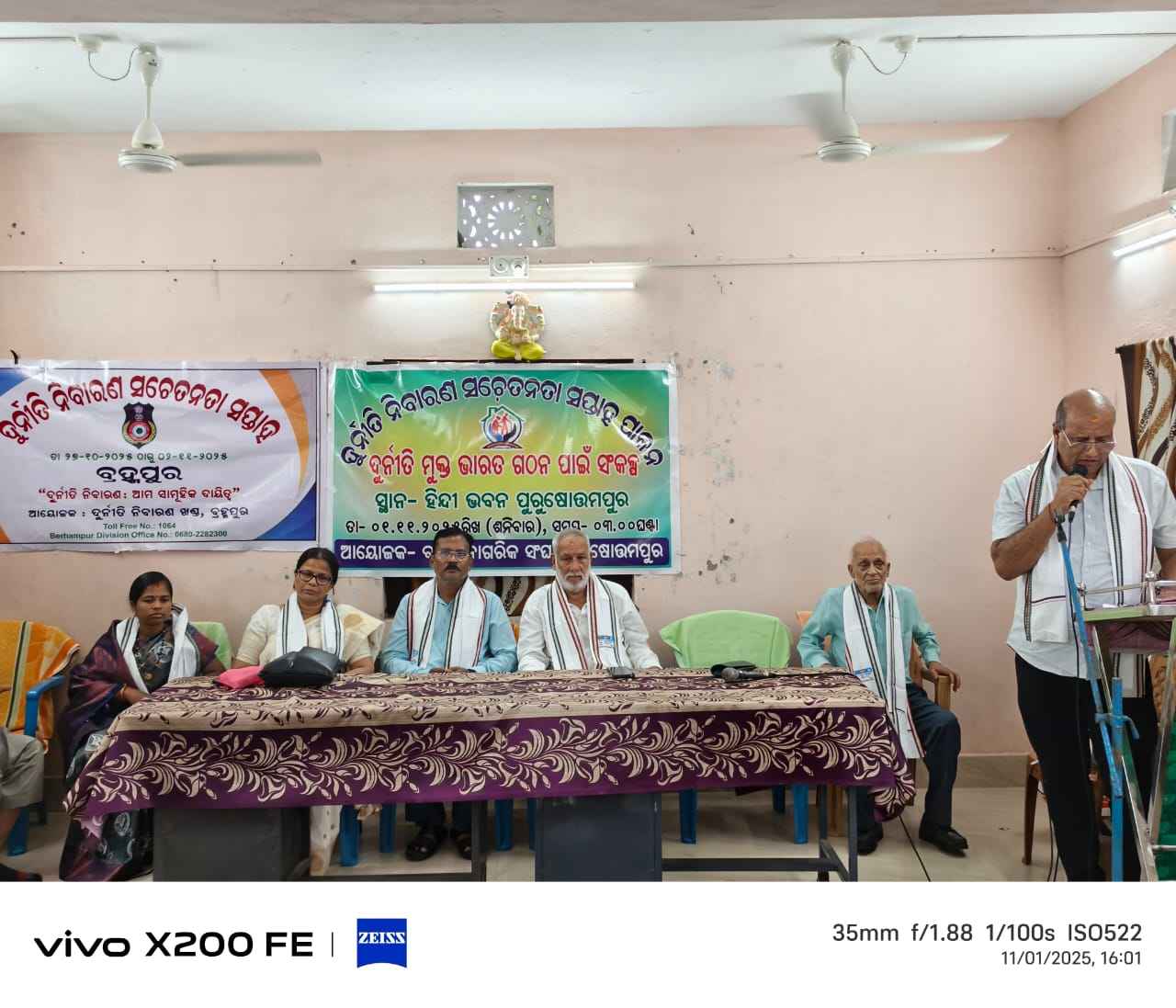 ପୁରୁଷୋତ୍ତମପୁର ହିନ୍ଦୀ ଭବନ ରେ ଦୁର୍ନୀତି ନିବାରଣ ସଚେତନତା କାର୍ଯ୍ୟକ୍ରମ ଅନୁଷ୍ଠିତ |