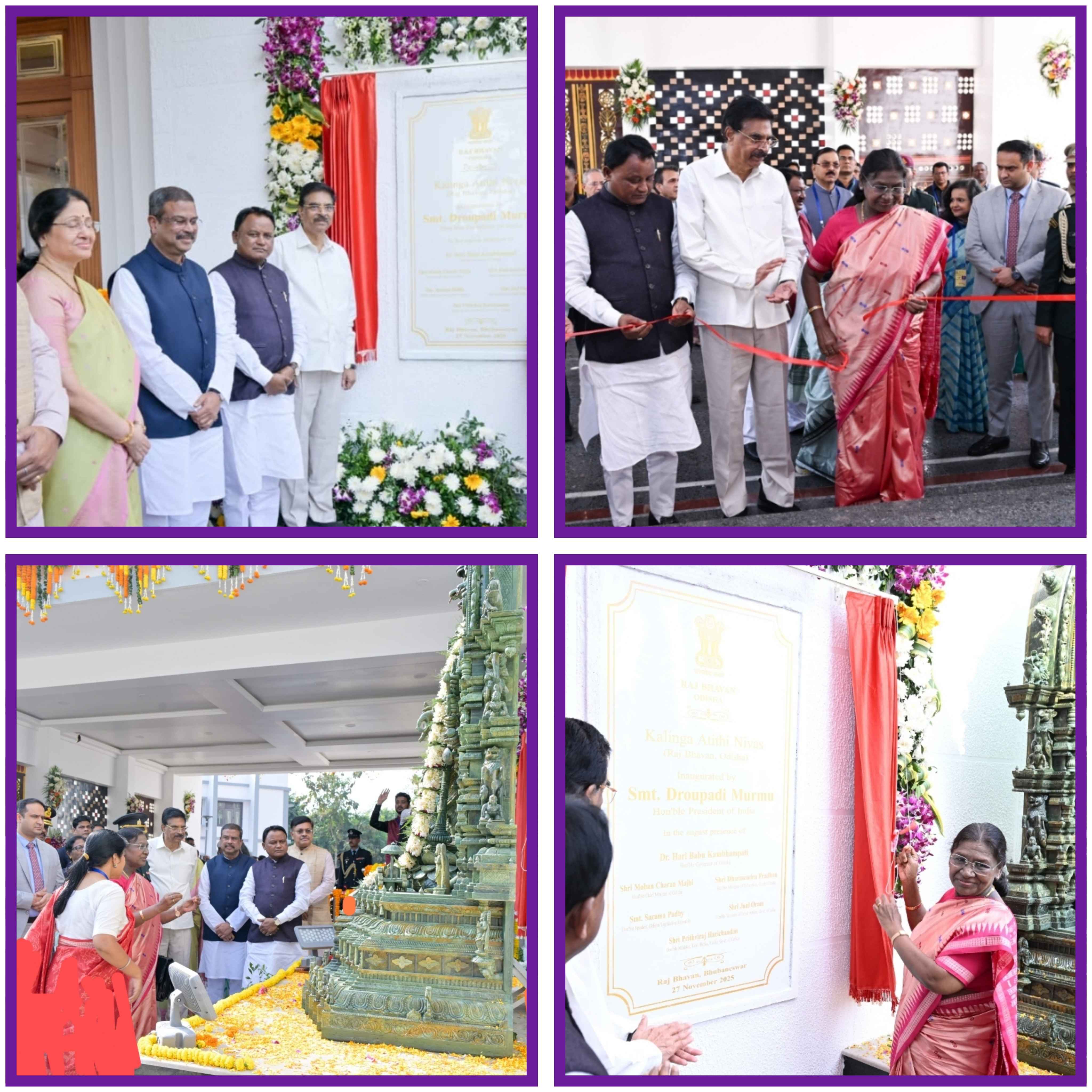 ଦୁଇ ଦିନିଆ ଓଡ଼ିଶା ଗସ୍ତରେ ଆସିଥିବା ମହାମହିମ ଭାରତର ରାଷ୍ଟ୍ରପତି ଦ୍ରୌପଦୀ ମୁର୍ମୁ ଭୁବନେଶ୍ବରର ରାଜଭବନ ପରିସରରେ ନବ ନିର୍ମିତ କଳିଙ୍ଗ ଅତିଥି ନିବାସର ଉଦଘାଟନ କରିଛନ୍ତି । ଉଦଘାଟନ ଉତ୍ସବରେ ଓଡ଼ିଶାର ରାଜ୍ୟପାଳ ଡ. ହରି ବାବୁ କମ୍ବମପାତି, ପ୍ରଥମ ମହିଳା ଜୟଶ୍ରୀ କମ୍ବମପାତି, ମୁଖ୍ୟମନ୍ତ୍ରୀ ମୋହନ ଚରଣ ମାଝୀ, କେନ୍ଦ୍ର ଶିକ୍ଷା ମନ୍ତ୍ରୀ ଧର୍ମେନ୍ଦ୍ର ପ୍ରଧାନ, କେନ୍ଦ୍ର ଆଦିବାସୀ ବ୍ୟାପାର ମନ୍ତ୍ରୀ ଜୁଏଲ ଓରାମ, ଓଡ଼ିଶା ବିଧାନସଭାର ବାଚସ୍ପତି ସୁରମା ପାଢୀ ଏବଂ ଓଡ଼ିଶା ସରକାରଙ୍କ ଆଇନ, ପୂର୍ତ ଓ ଅବକାରୀ ମନ୍ତ୍ରୀ ପୃଥ୍ବୀରାଜ ହରିଚନ୍ଦନଙ୍କ ସମେତ ଅନେକ ଉଚ୍ଚପଦାଧୂ କାରୀ ଯୋଗଦେଇଥିଲେ । ଭବନର ସବୁଜ ପରିବେଶ ମଧ୍ୟରେ ଅବସ୍ଥିତ କଳିଙ୍ଗ ଅତିଥି ନିବାସରେ ଓଡ଼ିଶାର ସମୃଦ୍ଧ ସାଂସ୍କୃତିକଐତିହ୍ୟ ଓ ପାରମ୍ପରିକସ୍ଥାପତ୍ୟର ପ୍ରତିଫଳନ ହୋଇଛି । କଳିଙ୍ଗ ଅତିଥୁ ନିବାସରେ ବାହ୍ୟ ଏବଂ ଭିତର ପାର୍ଶ୍ଵ ଉଭୟ ଶାସ୍ତ୍ରୀୟ ଓଡ଼ିଆ କାରିଗରୀ ଆଧାରିତ ମୋଟିଫ୍, ଭାସ୍କର୍ଯ୍ୟ ଏବଂଡିଜାଇନ୍ ପ୍ରଦର୍ଶନ କରେ । ପ୍ରତ୍ୟେକ କୋଠରୀକୁ ଓଡ଼ିଶାର ପରିଚୟ ଏବଂ ସାଂସ୍କୃ ତିକ ଐତିହ୍ୟକୁ ପ୍ରତିଫଳିତ କରିବା ପାଇଁ ଚିନ୍ତନଶୀଳ ଭାବରେ ଡିଜାଇନ୍ କରାଯାଇଛି । ଅତିଥି ଭବନର ଉଦଘାଟନଏକ ଗୁରୁତ୍ବପୂର୍ଣ୍ଣ ଗର୍ବର ମୁହୂର୍ତ୍ତ କାରଣ ଏହି ପ୍ରକଳ୍ପର ଭିତିପ୍ରସ୍ତର ସ୍ଥାପନ ପୂର୍ବରୁ ନିଜେ ମାନ୍ୟବର ରାଷ୍ଟ୍ରପତି କରିଥିଲେ ।