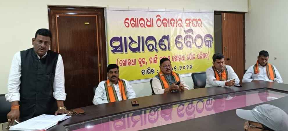 ଖୋର୍ଦ୍ଧା ଠିକାଦାର ସଂଘର ସାଧାରଣ ବୈଠକ ::ସଭାପତି-ନିକୁଞ୍ଜ ପଟ୍ଟନାୟକ, ସମ୍ପାଦକ--ପ୍ରକାଶ ରଣସିଂହ,,କୋଷାଧ୍ୟକ-ରବୀନ୍ଦ୍ର ରାଉତରାୟ ମନୋନୀତ