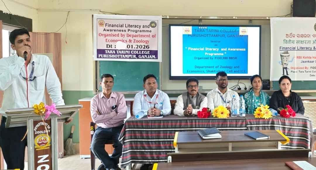 ୩୦ ଜାନୁଆରୀ ୨୦୨୬ ତାରିଖରେ ଗଞ୍ଜାମ ଜିଲ୍ଲାର ପୁରୁଷୋତ୍ତମପୁର (ଗଞ୍ଜାମ) ଅବସ୍ଥିତ ତାରା ତାରିଣୀ କଲେଜରେ ଏକ **ଆର୍ଥିକ ସାକ୍ଷରତା ଓ ସଚେତନତା କାର୍ଯ୍ୟକ୍ରମ** ସଫଳତାର ସହିତ ଅନୁଷ୍ଠିତ ହୋଇଥିଲା। ଏହି କାର୍ଯ୍ୟକ୍ରମଟି ଅର୍ଥନୀତି ବିଭାଗ ଓ ପ୍ରାଣୀବିଜ୍ଞାନ (ଜୁଓଲୋଜି) ବିଭାଗ, ଶକ୍ତିଶ୍ରୀ ସେଲ୍ ଏବଂ ଆଇସିସି (ICC) ଦ୍ୱାରା ସଂଯୁକ୍ତ ଭାବେ ଆୟୋଜିତ ହୋଇ, ଭାରତୀୟ ରିଜର୍ଭ ବ୍ୟାଙ୍କ, ଭୁବନେଶ୍ୱରର FIDD ସହଯୋଗରେ କରାଯାଇଥିଲା।