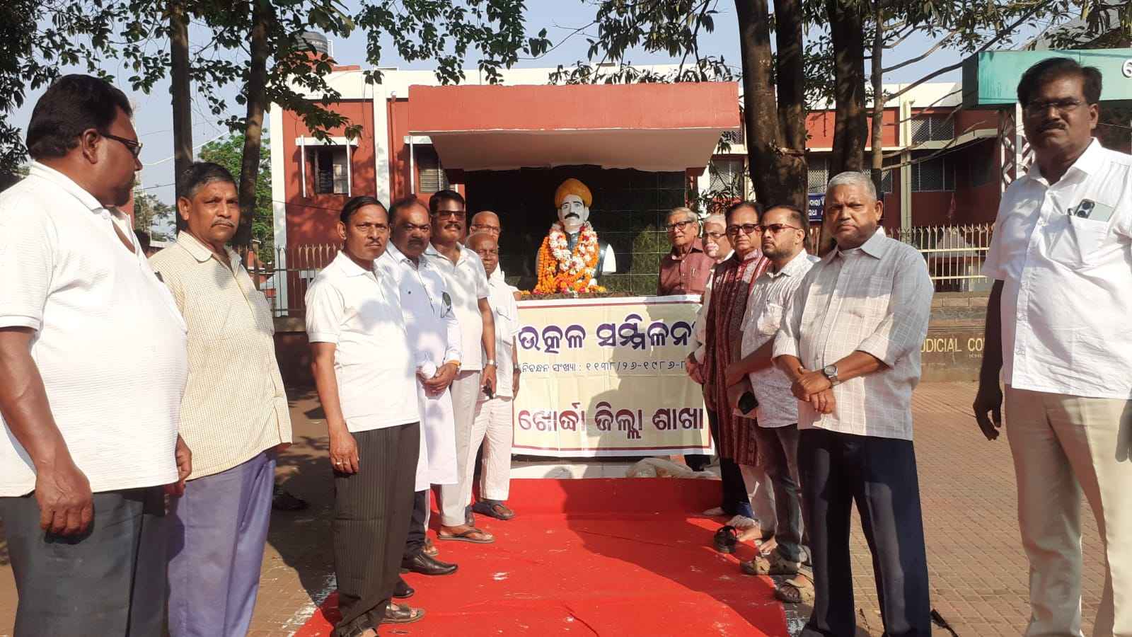 ଉତ୍କଳ ସମ୍ମିଳନୀ ଖୋର୍ଦ୍ଧା ଜିଲ୍ଲା ଶାଖା ତରଫରୁ ଉତ୍କଳ ଦିବସ ଉପଲକ୍ଷେ ଉତ୍କଳ ଗୌରବ ମଧୁସୂଦନ ଦାସ ଙ୍କ ପ୍ରତିମୂର୍ତ୍ତି ରେ ମାଲ୍ୟାର୍ପଣ