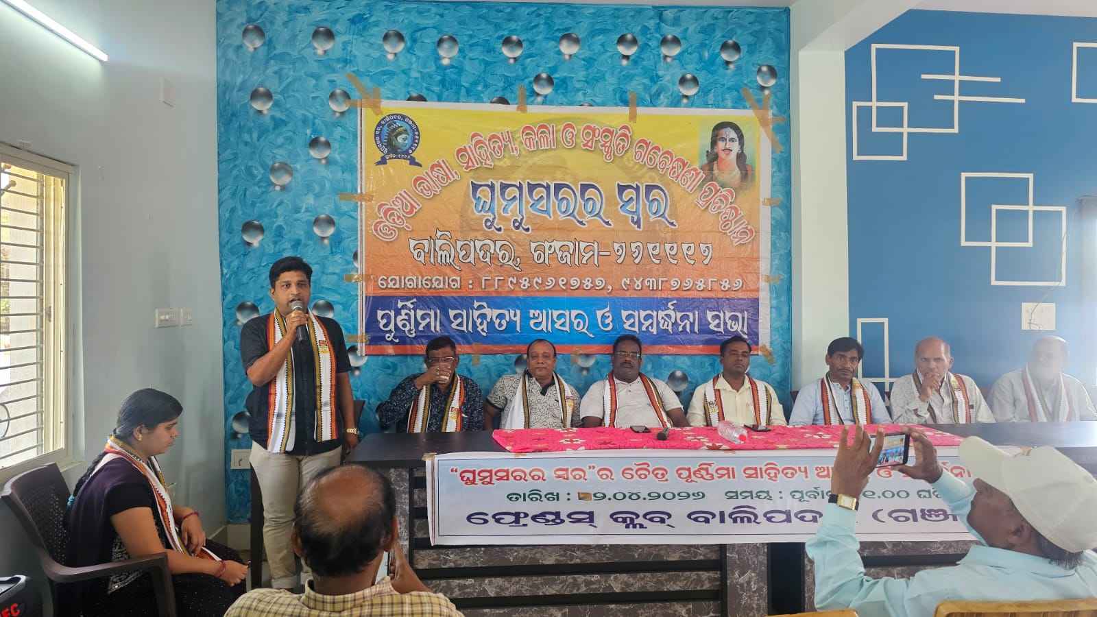 ଓଡ଼ିଆ ଭାଷା ସାହିତ୍ୟ କଳା ଓ ସଂସ୍କୃତି ଗବେଷଣା ପ୍ରତିଷ୍ଠାନ "ଘୁମୁସର ର ସ୍ବର" ବାଲିପଦର ପକ୍ଷରୁ ଚୈତ୍ର ପୁର୍ଣ୍ଣିମା ଅବସରରେ ୧୬୦ତମ ଆଲୋଚନା ଚକ୍ର, ସମ୍ବର୍ଦ୍ଧନା ସଭା ଓ କବିତା ଆସର ବାଲିପଦର ଫ୍ରେଣ୍ଡସ୍ କ୍ଳବ୍ ଠାରେ ପ୍ରତିଷ୍ଠାନର ସଭାପତି ତଥା ବାଲିପଦର କଲେଜର ପ୍ରାକ୍ତନ ଅଧ୍ଯକ୍ଷ ଡକ୍ଟର ବି. ପ୍ରକାଶ ଚନ୍ଦ୍ର ପାତ୍ରଙ୍କ ପୌରହିତ୍ଯରେ ଅନୁଷ୍ଠିତ ହୋଇଯାଇଛି। ଏଥିରେ ଅତିଥି ଭାବେ ଯୁବ ସମାଜସେବୀ ଜି.ସଞ୍ଜୀବ କୁମାର ପାତ୍ର ଯୋଗଦେଇ କବିସମ୍ରାଟ ଉପେନ୍ଦ୍ରଭଞ୍ଜଙ୍କ ଫଟୋଚିତ୍ରରେ ପ୍ରଦୀପ ପ୍ରଜ୍ବଳନ କରି କାର୍ଯ୍ୟକ୍ରମକୁ ଉଦଘାଟନ କରିଥିଲେ। ମୁଖ୍ୟ ଅତିଥି ଭାବେ ଭଞ୍ଜନଗର ଉପଖଣ୍ଡ ଲୋକ ସମ୍ପର୍କ ଅଧିକାରୀ ସନ୍ତୋଷ କୁମାର ନାୟକ ଯୋଗଦେଇ ଘୁମୁସର ଅଞ୍ଚଳର ପ୍ରାଚୀନ ସାହିତ୍ୟ କୃତିକୁ ସଂରକ୍ଷଣ କରି ରଖିବା ଆମର ନୈତିକ କର୍ତ୍ତବ୍ଯ ବୋଲି ମତବ୍ୟକ୍ତ କରିଥିଲେ। ବରେଣ୍ୟ ଅତିଥି ଆନ୍ତର୍ଜାତିକ ଖ୍ୟାତି ସମ୍ପର୍ଣ୍ଣ ଡାକ୍ତର ରାଜେନ୍ଦ୍ର କୁମାର ବେହେରାଙ୍କ ସାହିତ୍ୟ କୃତିକୁ ସମ୍ମାନ ଜଣାଇ ପ୍ରତିଷ୍ଠାନ ପକ୍ଷରୁ "ଘୁମୁସର ର ସ୍ବର" ସମ୍ମାନରେ ସମ୍ବର୍ଦ୍ଧିତ କରାଯାଇଥିଲା। ଅନ୍ୟତମ ଅତିଥି ଭାବେ ଡ.ବ୍ରଜ କିଶୋର ପାଢ଼ୀ, ଡ. ସୂର୍ଯ୍ୟ ନାରାୟଣ ପଣ୍ଡା, ଅଧ୍ୟାପକ ଦେବାଶିଷ ସ୍ବାଇଁ, ପ୍ରଧାନ ଶିକ୍ଷକ ଇ.ନିଳାଞ୍ଚଳ ପାତ୍ର, ନୟନୀ ମହାରଣା,ରାଜେନ୍ଦ୍ର ମହାରଣା ଯୋଗଦେଇ ନିଜ ନିଜର ସୁଚିନ୍ତିତ ବକ୍ତବ୍ଯ ପ୍ରଦାନ କରିଥିଲେ। ସନ୍ୟାସୀ ମହାରଣା, କୁଶ ବଷୋୟୀ, ଧ୍ରୁବ ପାଣିଗ୍ରାହୀ, କେ.ରାଘବ ପାତ୍ର, ପଦ୍ମଲୋଚନ ଗୌଡ଼, ଜି.ମନୋଜ କୁମାର ପାତ୍ର ପ୍ରମୁଖ ସହଯୋଗ କରିଥିଲେ। ଶେଷରେ ଫ୍ରେଣ୍ଡସ୍ କ୍ଳବ୍ ସଭାପତି ଧନ୍ଯବାଦ ଅର୍ପଣ କରିଥିଲେ। ମାନସୀ ଗୌଡ ଭଞ୍ଜ ସଙ୍ଗୀତ ପରିବେଷଣ କରିଥିବା ବେଳେ ଅରବିନ୍ଦ ପୂର୍ଣ୍ଣାଙ୍ଗ ଶିକ୍ଷାକେନ୍ଦ୍ରର ଶିକ୍ଷୟତ୍ରୀମାନେ ସାଂସ୍କୃତିକ କାର୍ଯ୍ୟକ୍ରମ ପରିବେଷଣ କରି ପ୍ରସ°ଶା ସାଉଁଟିଥିଲେ।