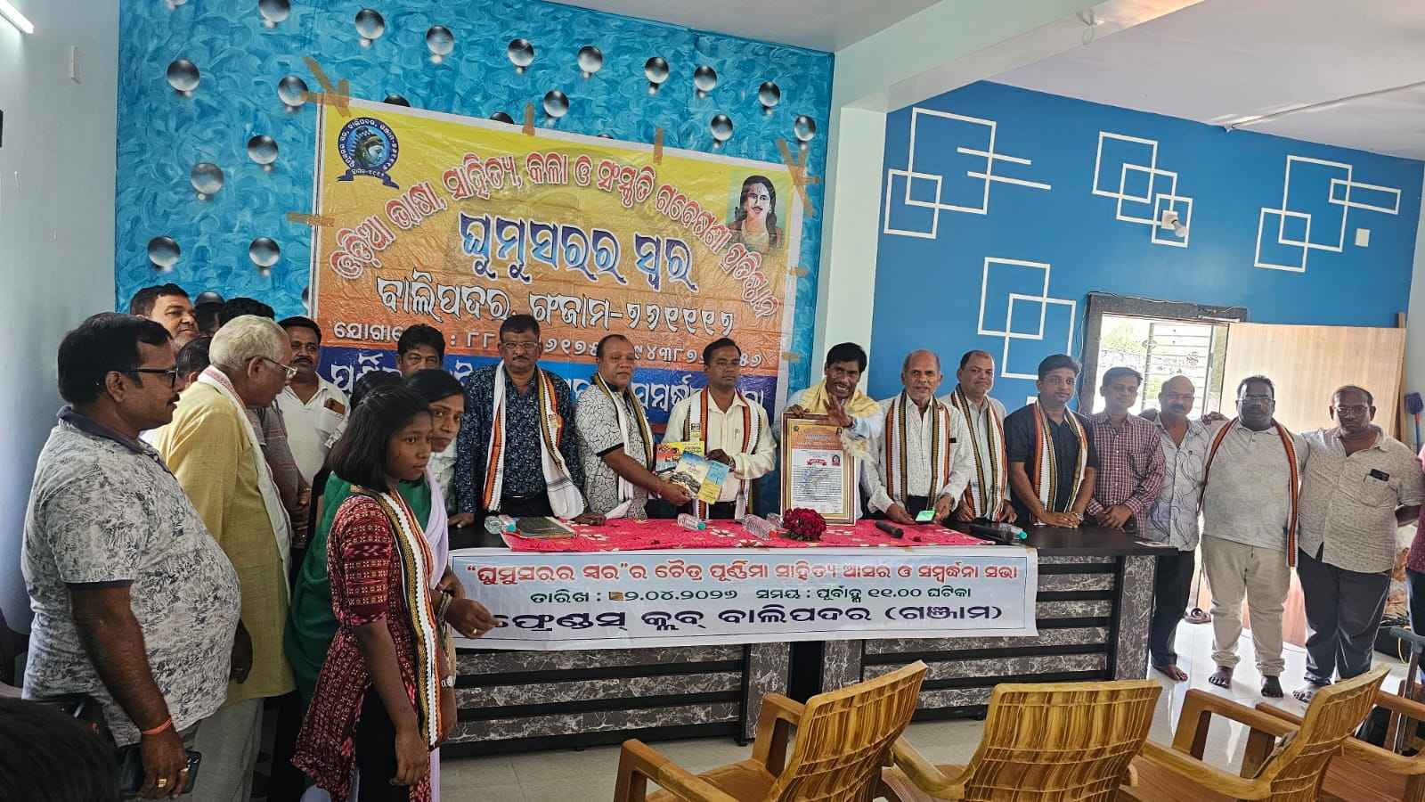 ଓଡ଼ିଆ ଭାଷା ସାହିତ୍ୟ କଳା ଓ ସଂସ୍କୃତି ଗବେଷଣା ପ୍ରତିଷ୍ଠାନ "ଘୁମୁସର ର ସ୍ବର" ବାଲିପଦର ପକ୍ଷରୁ ଚୈତ୍ର ପୁର୍ଣ୍ଣିମା ଅବସରରେ ୧୬୦ତମ ଆଲୋଚନା ଚକ୍ର, ସମ୍ବର୍ଦ୍ଧନା ସଭା ଓ କବିତା ଆସର ବାଲିପଦର ଫ୍ରେଣ୍ଡସ୍ କ୍ଳବ୍ ଠାରେ ପ୍ରତିଷ୍ଠାନର ସଭାପତି ତଥା ବାଲିପଦର କଲେଜର ପ୍ରାକ୍ତନ ଅଧ୍ଯକ୍ଷ ଡକ୍ଟର ବି. ପ୍ରକାଶ ଚନ୍ଦ୍ର ପାତ୍ରଙ୍କ ପୌରହିତ୍ଯରେ ଅନୁଷ୍ଠିତ ହୋଇଯାଇଛି। ଯୁବ ସମାଜସେବୀ ଜି.ସଞ୍ଜୀବ କୁମାର ପାତ୍ର କବିସମ୍ରାଟ ଉପେନ୍ଦ୍ରଭଞ୍ଜଙ୍କ ଫଟୋଚିତ୍ରରେ ପ୍ରଦୀପ ପ୍ରଜ୍ବଳନ କରି କାର୍ଯ୍ୟକ୍ରମକୁ ଉଦ୍ ଘାଟନ କରିଥିଲେ। ମୁଖ୍ଯ ଅତିଥି ଭାବେ ଭଞ୍ଜନଗର ଉପଖଣ୍ଡ ଲୋକ ସମ୍ପର୍କ ଅଧିକାରୀ ସନ୍ତୋଷ କୁମାର ନାୟକ ଯୋଗଦେଇ ଘୁମୁସର ଅଞ୍ଚଳର ପ୍ରାଚୀନ ସାହିତ୍ୟ କୃତିକୁ ସଂରକ୍ଷଣ କରି ରଖିବା ଆମର ନୈତିକ କର୍ତ୍ତବ୍ଯ ବୋଲି ମତବ୍ୟକ୍ତ କରିଥିଲେ। ବରେଣ୍ୟ ଅତିଥି ଆନ୍ତର୍ଜାତିକ ଖ୍ୟାତି ସମ୍ପର୍ଣ୍ଣ ଡାକ୍ତର ରାଜେନ୍ଦ୍ର କୁମାର ବେହେରାଙ୍କ ସାହିତ୍ୟ କୃତିକୁ ସମ୍ମାନ ଜଣାଇ ପ୍ରତିଷ୍ଠାନ ପକ୍ଷରୁ "ଘୁମୁସର ର ସ୍ବର" ସମ୍ମାନରେ ସମ୍ବର୍ଦ୍ଧିତ କରାଯାଇ ଥିଲା। ଅନ୍ୟ ତମ ଅତିଥି ଭାବେ ଡ.ବ୍ରଜ କିଶୋର ପାଢ଼ୀ, ଡ. ସୂର୍ଯ୍ୟ ନାରାୟଣ ପଣ୍ଡା, ଅଧ୍ୟାପକ ଦେବାଶିଷ ସ୍ବାଇଁ, ପ୍ରଧାନ ଶିକ୍ଷକ ଇ.ନିଳାଞ୍ଚଳ ପାତ୍ର, ନୟନୀ ମହାରଣା,ରାଜେନ୍ଦ୍ର ମହାରଣା ଯୋଗଦେଇ ବକ୍ତବ୍ଯ ପ୍ରଦାନ କରି ଥିଲେ। ସନ୍ୟାସୀ ମହାରଣା, କୁଶ ବଷୋୟୀ, ଧ୍ରୁବ ପାଣିଗ୍ରାହୀ, କେ.ରାଘବ ପାତ୍ର, ପଦ୍ମଲୋଚନ ଗୌଡ଼, ଜି.ମନୋଜ କୁମାର ପାତ୍ର ସହଯୋଗ କରିଥିଲେ। ଶେଷରେ ଫ୍ରେଣ୍ଡସ୍ କ୍ଳବ୍ ସଭାପତି ଦେବନାଥ ରଣା ଧନ୍ଯବାଦ ଅର୍ପଣ କରିଥିଲେ। ମାନସୀ ଗୌଡ ଭଞ୍ଜ ସଙ୍ଗୀତ ପରିବେଷଣ କରିଥିବା ବେଳେ ଅରବିନ୍ଦ ପୂର୍ଣ୍ଣାଙ୍ଗ ଶିକ୍ଷାକେନ୍ଦ୍ରର ଶିକ୍ଷୟତ୍ରୀ ମାନେ ସାଂସ୍କୃତିକ କାର୍ଯ୍ୟକ୍ରମ ପରିବେଷଣ କରିଥିଲେ।