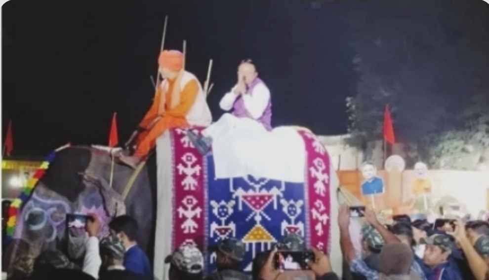 ବରଗଡ 13/01 : ବରଗଡ଼ର ବିଶ୍ଵ ପ୍ରସିଦ୍ଧ ଧନୁଯାତ୍ରା ମହୋତ୍ସବରେ ସାମିଲ ହୋଇଛନ୍ତି ମୁଖ୍ୟମନ୍ତ୍ରୀ ମୋହନ ଚରଣ ମାଝୀ | ମୁଖ୍ୟମନ୍ତ୍ରୀ ଶ୍ରୀ ମାଝୀ ଧନୁଯାତ୍ରା ପାଇଁ ମଥୁରାନଗରୀ (ବରଗଡ଼)ର ମୁଖ୍ୟ ରାସ୍ତାରେ ହାତୀ ଉପରେ ବସି ମୁଖ୍ୟ ମଞ୍ଚକୁ ଯିବା ସମୟରେ