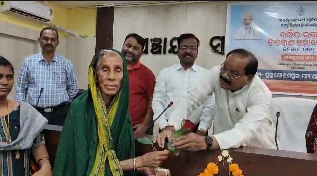 ଆଜି ପୁରୁଷୋତ୍ତମପୁର ବ୍ଲକ ପରିସରରେ ସାମାଜିକ ସେବା ଦିବସ ଅବସରରେ ରାଜ୍ୟ ସରକାର ଙ୍କ ଦ୍ୱାରା 80 ବର୍ଷ ରୁ ଉର୍ଦ୍ଧ ବ୍ୟକ୍ତି ମାନଙ୍କ ସହିତ 80 ଭାଗରୁ ଉର୍ଦ୍ଧ ପ୍ରତିଶତ ଥିବା ଭିର୍ଣ୍ଣ କ୍ଷମ ବ୍ୟକ୍ତିଙ୍କୁ ଖଲ୍ଲିକୋଟ ବିଧାୟକ ପୁର୍ଣଚନ୍ଦ୍ର ସେଠୀ , ବ୍ଲକ ଉପାଧ୍ୟକ୍ଷା ପିଙ୍କି ବେହେରା, ବିଡ଼ିଓ ମନୋଜ କୁମାର ନାୟକ, ବରିଷ୍ଟ ଯୁବନେତା ନିର୍ମଳ ଚନ୍ଦ୍ର ସାହୁ, ବ୍ଲକ ନିର୍ବାହୀ ଯନ୍ତ୍ରୀ ସରୋଜ କୁମାର ସାବତ, ବିଏସ ଏସ ଓ କାହ୍ନୁ ଚରଣ ସୋରେନ, ଙ୍କ ସହିତ ହାଣ୍ଡି ଘର ସରପଞ୍ଚ ଓ ଶିକୁଳା ସମିତି ସଭ୍ୟ , ସରପଞ୍ଚ , ଙ୍କ ଉପସ୍ଥିତି ରେ 7ଜଣ ଙ୍କୁ 3500 ଟଙ୍କାର ଭତ୍ତା ବଣ୍ଟନ କରାଯାଇ ଥିଲା | ପ୍ରଥମ କରି 80ବର୍ଷ ରୁ ଉର୍ଦ୍ଧ ଭତ୍ତା ଧାରିଙ୍କୁ ଏହା ପ୍ରଦାନ କରାଯାଇ ଛି | ଏହି କାର୍ଯ୍ୟକ୍ରମ ରେ ସମାଜ ସେବୀ ଜଗତ ବନ୍ଧୁ ପଣ୍ଡା, ତାପସ ବେହେରା, ସିପି ବରୁଣ ପାତ୍ର, ବ୍ଲକ ହେଡ଼କ୍ଲର୍କ, ଭତ୍ତା ବିଭାଗ ର ଜୟଶ୍ରୀ ଦୋରା, ଓ ବ୍ଲକ ର ଅନ୍ୟନ୍ୟ ଷ୍ଟାଫ ଙ୍କ ସହିତ 7ଗୋଟି ପଞ୍ଚାୟତର ଜନ ପ୍ରତିନିଧି ମାନେ ମଧ୍ୟ ଉପସ୍ଥିତ ଥିଲେ | ବିଧାୟକ ମାନ୍ୟବର ମୁଖ୍ୟମନ୍ତ୍ରୀ ଙ୍କ ନିର୍ଦ୍ଧେଶ ଅନୁସାରେ ବିଜେପି ସରକାର ତାଙ୍କ ପ୍ରତିଶୃତି ପାଳନ କରିଛନ୍ତି ବୋଲି କହି ଛନ୍ତି | ଏପଟେ ବିଡ଼ିଓ ମନୋଜ ନାୟକ କହିଛନ୍ତି ଯେ ଆମର 26 ଗୋଟି ପଞ୍ଚାୟତ ମଧ୍ୟରୁ 80ବର୍ଷ ରୁ ଉର୍ଦ୍ଧ ବୃଦ୍ଧ, ବୃଦ୍ଧା, ଭିର୍ଣ୍ଣ କ୍ଷମ , ଓ ବିଧବା, ମୋଟ 1161 ଜଣ ଥିବାର ଚିହ୍ନଟ କରାଯାଇଛି | ଆଗାମୀ ଦିନରେ ଏହି ମାନଙ୍କୁ 3500 ଟଙ୍କା ବେଙ୍କ ମାଧ୍ୟମରେ ହେଉ କିମ୍ବା ଅର୍ଥ ମାଧ୍ୟମରେ ସେମାନଙ୍କୁ ପ୍ରଦାନ କରାଯିବ ବୋଲି କହିଛନ୍ତି | ଆଜି କେବଳ ସାମାଜିକ ସେବା ଦିବସ ଥିବାରୁ ଏହି 7ଜଣ ଙ୍କୁ ଦୃଷ୍ଟାନ୍ତ ମୂଳକ ଭାବେ ବଣ୍ଟନ କରା ଯାଇଛି ବୋଲି କହିଛନ୍ତି |