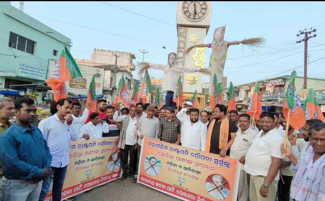 ବିଜେପି ପକ୍ଷରୁ ରାଷ୍ଟ୍ରପତିଙ୍କ ଅପମାନର ପ୍ରତିବାଦ, ସୋନିଆ ଓ ରାହୁଲ ଗାନ୍ଧୀଙ୍କ କୁଶ ପୁତ୍ତଳିକା ଦାହ,