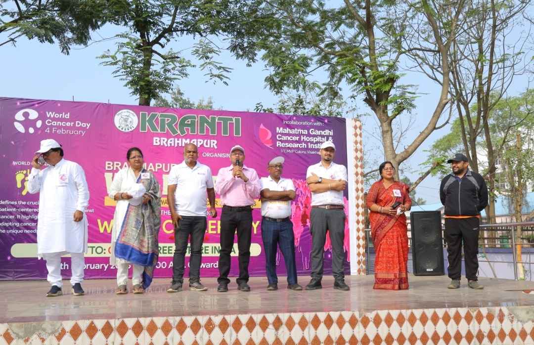 ଏସୋସିଷ୍ଟଟ ପ୍ରଫେସର ଡାକ୍ତର ପ୍ରୀୟଜୀତ ଜେନା, ମନୁ ସେନା ର ଚେୟାରପର୍ସନ ମୀନା ଦ୍ୟାନ ସାମନ୍ତରାୟ, ସାମନ୍ତରାୟ ଏକାଡେମୀ ର ନିର୍ଦେଶକ ଦେବେଶ ସାମନ୍ତରାୟ ଓ ସରକାରୀ ଶିଳ୍ପ ତାଲିମ କେନ୍ଦ୍ର ଅଧକ୍ଷ ଇଁ ରଞ୍ଜନ କୁମାର ପରିଡ଼ାଙ୍କ ସମେତ ବହୁ ମାନ୍ୟଗଣ୍ୟ ବ୍ୟକ୍ତିଙ୍କ ସହ ବିଭିନ୍ନ ଗଣମାଧ୍ୟମ ବ୍ୟକ୍ତି ବିଶେଷ ଉପସ୍ଥିତ ରହି ବିଶ୍ବ କର୍କଟ ଦିବସ ଅବସରରେ ଜନସାଧାରଣଙ୍କୁ କର୍କଟ ରୋଗର ଭୟାବହତା ବିଷୟରେ ଉପସ୍ଥିତ ଛାତ୍ରଛାତ୍ରୀ ମାନଙ୍କୁ ସଚେତନତା କରାଇଥିଲେ।କ୍ରାନ୍ତି ଅନୁଷ୍ଠାନର କାର୍ଯନିର୍ବାହୀ ନିର୍ଦ୍ଦେଶକ ଡ଼ ଦେବାନନ୍ଦ ଦାଶଙ୍କ ପ୍ରତ୍ୟେକ ତତ୍ଵାବଧାନ ରେ ଉକ୍ତ ସଚେତନତା ସଭା ଓ ବିଶାଳ ପଦଯାତ୍ରାରେ ସେ ଜଣେ ମୁଖ କର୍କଟ ରୋଗୀ ହୋଇଥିବା ଯୋଗୁଁ ସେ ଲୋକମାନଙ୍କୁ କହିଥିଲେ କର୍କଟ ରୋଗ ପ୍ରତି ଜନସାଧାରଣଙ୍କ ମଧ୍ୟରେ ସଠିକ୍ ସଚେତନ ନଥିବାରୁ , ଏହି ରୋଗରେ ପୀଡିତ ମୃତ୍ୟୁ ସୁନିଶ୍ଚିତ ବୋଲି ଭାବି ନିଅନ୍ତି ଏବଂ ପ୍ରତ୍ୟେକ ବର୍ଷ ଲକ୍ଷ ଲକ୍ଷ ଲୋକଙ୍କ ମୃତ୍ୟୁ ଘଟୁଛି। କର୍କଟ ରୋଗର ଚିକିତ୍ସା ବର୍ତମାନ ସମୟରେ ଅତ୍ୟନ୍ତ ସହଜ ଓ ଉପଯୁକ୍ତ ଚିକିତ୍ସା ମିଳିଲେ ଏଥିରୁ ରୋଗୀ ବଞ୍ଚି ପାରିବ।ସେ ଉପସ୍ଥିତି ସମସ୍ତଙ୍କୁ ନିବେଦନ କରି କହିଥିଲେ ଆସନ୍ତୁ ସମସ୍ତେ ମିଳମିଶି ସଚେତନ କରିବା ଓ ଭାରତକୁ କର୍କଟ ମୁଖରୁ ରକ୍ଷା କରିବା। ଉପସ୍ଥିତ ସମସ୍ତଙ୍କୁ ଶପଥ କରାଇ ତମାଖୁ ଛାଡ଼ନ୍ତୁ ଜୀବନ ବାଛନ୍ତୁ ଏହି ମନ୍ତ୍ର ସଂକଳ୍ପ କରାଇଥିଲେ। ଡ. ପାତ୍ର କର୍କଟ ରୋଗ ବିଷୟରେ ଆଲୋକପାତ କରାଇବା ସହ ଲୋକ ମାନେ କିପରି ସୁବିଧାରେ ଚିକିତ୍ସା କରି ପାରିବେ ସମସ୍ତ ଙ୍କୁ ଅବଗତ କରାଇଥିଲେ। ସମସ୍ତ ଅତିଥି ମାନେ ପ୍ଲାକ କାଡ ଦେଖାଇ ବିଶାଳ ପଦଯାତ୍ର (ୱାକଥନ୍ )କୁ ଶୁଭାରମ୍ଭ କରିଥିଲେ।ଏହି ବିଶାଳ ସମାରୋହ ଓ ଗଣ ପଦଯାତ୍ରାରେ ବିଭିନ୍ନ ସାମାଜିକ ଅନୁଷ୍ଠାନ, ସ୍ବେଛାସେବୀ ମାନଙ୍କ ସହ ସାମନ୍ତରାୟ ଏକାଡେମୀ, ଆର୍ୟାନ ଗୁରୁକୂଳ, କେ.ସି. ପବ୍ଲିକ ସ୍କୁଲ, ଆଇ ଟି ଆଈ ବ୍ରହ୍ମପୁର, ଜ୍ଞାନ ବିକାଶ ଇଂଲିଶ ମିଡ଼ିୟମ ସ୍କୁଲ, ନାଳନ୍ଦା ହାୟର ସେକେଣ୍ଡାରୀ ସ୍କୁଲ, ସେଣ୍ଟ ଜାଭିୟର୍ସ ସ୍କୁଲ, ୟୁସିପି ଇଂଜିନିୟରିଂ ସ୍କୁଲ , ସିଦ୍ଧ ଭୈରବୀ ହାୟର ସେକେଣ୍ଡାରୀ ସ୍କୁଲ, ବ୍ରହ୍ମପୁର ପୋଲିସ ବାହିନୀ , ଆଇଏସଆରଡି ଓ ୱାନ ଷ୍ଟେପ ସେଣ୍ଟର ର କର୍ମକର୍ତ୍ତା ସହ ସମସ୍ତ ସ୍କୁଲର ଶିକ୍ଷକ ଶିକ୍ଷୟିତ୍ରୀଙ୍କ ସହ ପ୍ରାୟ ୧୮୦୦ ଯୁବକ ଯୁବତୀ ଯୋଗଦେଇ ପଦଯାତ୍ରାରେ କର୍କଟ ରୋଗ ବିଷୟରେ ଲୋକମାନଙ୍କୁ ସଚେତନତା କରାଇଥିଲେ। ବ୍ରହ୍ମପୁର ସହର ର ଏସଡିପିଓ, ରିସର୍ଭ ଇନ୍ସପେକ୍ଟର,ଅନ୍ୟାନ୍ୟ ପୋଲିସ କର୍ମଚାରୀ, ସମସ୍ତ ଗଣ ମାଧ୍ୟମ ବ୍ୟକ୍ତି ବିଶେଷ ଉପସ୍ଥିତ ରହି ଛାତ୍ରଛାତ୍ରୀ ମାନଙ୍କୁ ଉତ୍ସାହିତ କରିଥିଲେ।