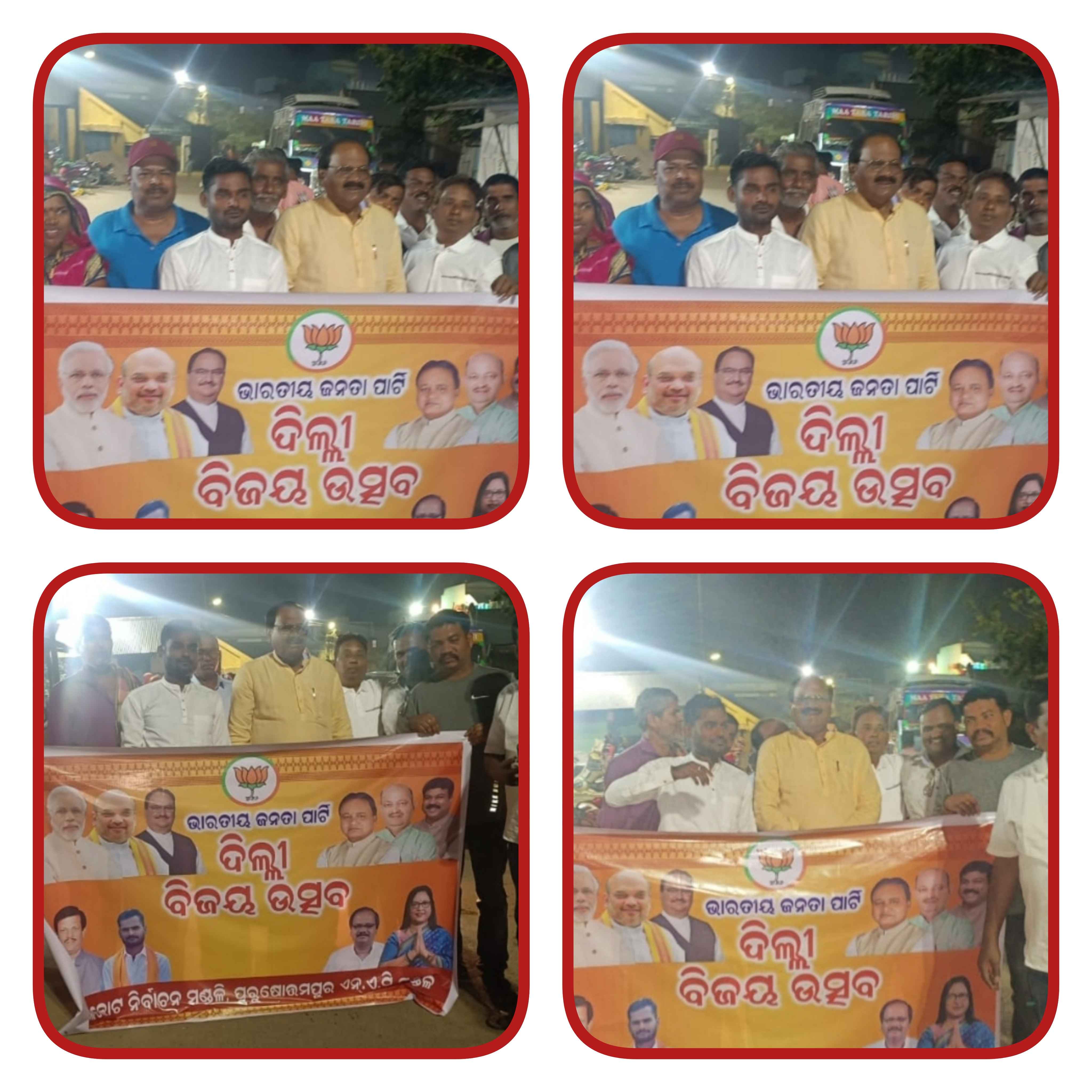 ଦିଲ୍ଲୀ ବିଧାନ ସଭା ନିର୍ବାଚନ ରେବିଜେପି ର ବିରାଟ ସଫଳ ତା ପାଇଁ ପୁରୁଷୋତ୍ତମପୁର ସହର ରେ କର୍ମୀ ନେତାଙ୍କ ବାଣ ଫୁଟେଇ ବିଜୟ ଉତ୍ସବ ପାଳନ ,