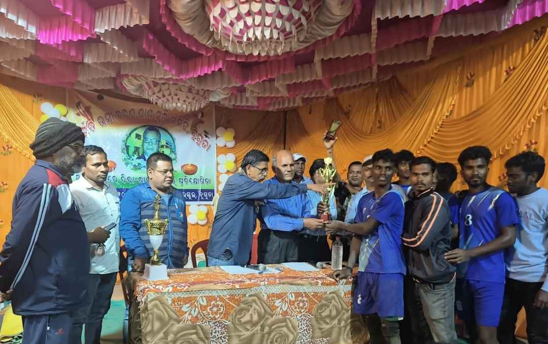 ଓଡିଶାଜନମତ,ବୁଗୁଡ଼ା, ହର ପ୍ରସାଦପାଢ଼ୀ,ତା୧୧/୦୨/: ସ୍ଥାନୀୟ ପିପୁଲ୍ସ ହାଇସ୍କୁଲ ପ୍ରାଙ୍ଗଣରେ ସ୍ବର୍ଗତ ଉମାଚରଣ ଦାଶ ସ୍ମୃତି କମିଟି ପକ୍ଷରୁ ଏକଦିବସୀୟ ଦିବାରାତ୍ର ଭଲିବଲ୍ ଟୁର୍ଣ୍ଣାମେଣ୍ଟ ଅନୁଷ୍ଠିତ ହୋଇଯାଇଛି । ଉକ୍ତ ଟୁର୍ଣ୍ଣାମେଣ୍ଟକୁ ପ୍ରାକ୍ତନ କାଉନସିଲର ସତ୍ଯଭାମା ଦାଶ ଉଦଘାଟନ କରିଥିଲା ବେଳେ ଏଥିରେ ଅତିଥି ଭାବେ ପୂର୍ବତନ ବିଧାୟକ ସିମାଞ୍ଚଳ ବେହେରା ଯୋଗ ଦେଇ ଅଂଶ ଗ୍ରହଣକାରୀ ଚାରୋଟି ଦଳର ଖେଳାଳିଙ୍କୁ ଉତ୍ସାହିତ କରିଥିଲେ ଏବଂ ଫାଇନାଲରେ ଗୁମା ଦଳ ୩-୦ ସେଟରେ ଦାରିଙ୍ଗବାଡ଼ି ଦଳକୁ ହରାଇ ବିଜୟୀ ଟ୍ରଫି ହାସଲ କରିଥିଲା। ଅଧିବକ୍ତା ହର ପ୍ରସାଦ ଦାଶଙ୍କ ସଭାପତିତ୍ୱରେ ଅନୁଷ୍ଠିତ ପୁରସ୍କାର ବିତରଣ ଉତ୍ସବରେ ଅତିଥି ଭାବେ ଶିକ୍ଷାବିତ୍ ବ୍ରଜ କିଶୋର ପାଢ଼ୀ, ଅଧ୍ୟାପକ ବିଭୁତି ଭୂଷଣ ମିଶ୍ର ଯୋଗ ଦେଇ ବିଜେତା ଗୁମା ଦଳକୁ ଓ୍ବିନର ଟ୍ରଫି ଏବଂ ଉପବିଜେତା ଦାରିଙ୍ଗିବାଡି ଦଳକୁ ରନର୍ ଟ୍ରଫି ସହ ପୁରସ୍କାର ରାଶି ପ୍ରଦାନ କରିଥିଲେ। ଉକ୍ତ କାର୍ଯ୍ୟକ୍ରମରେ ଅଧିବକ୍ତା ମାନସ ରଞ୍ଜନ ଦାଶ ସଂଯୋଜକ ଦାୟିତ୍ବ ନିର୍ବାହ କରିଥିଲା ବେଳେ ଟୁର୍ଣ୍ଣାମେଣ୍ଟ ଶାନ୍ତି ଶୃଙ୍ଖଳାର ସହ ସମ୍ପନ୍ନ ହୋଇଥିଲା।0