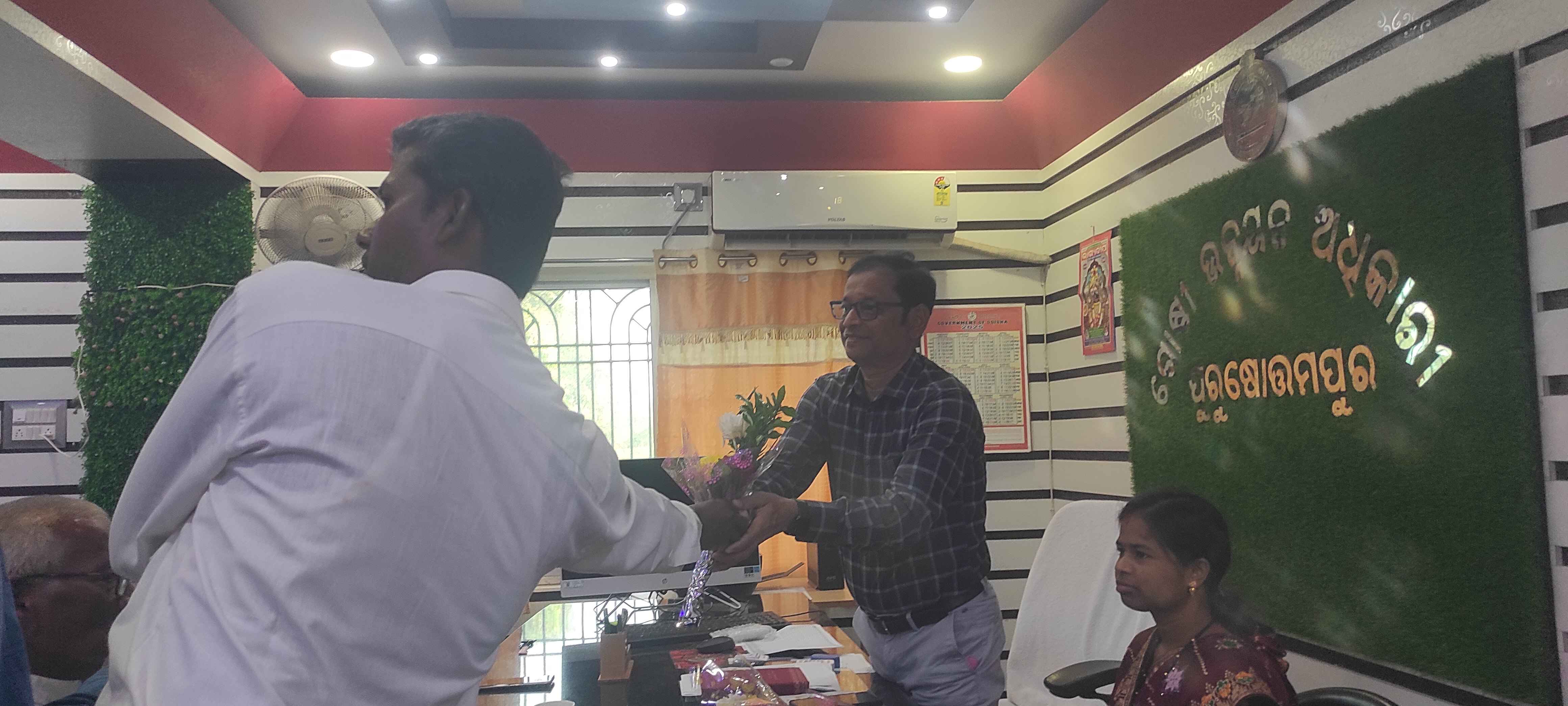 ପୁରୁଷୋତ୍ତମପୁର ବ୍ଲକ ର ନୂତନ ବିଡ଼ିଓ ଙ୍କୁ ପୁଷ୍ପ ଗୁଚ୍ଛ ଦେଇ ସ୍ୱାଗତ କଲେ ପିଆଇ ମେମ୍ବାର,