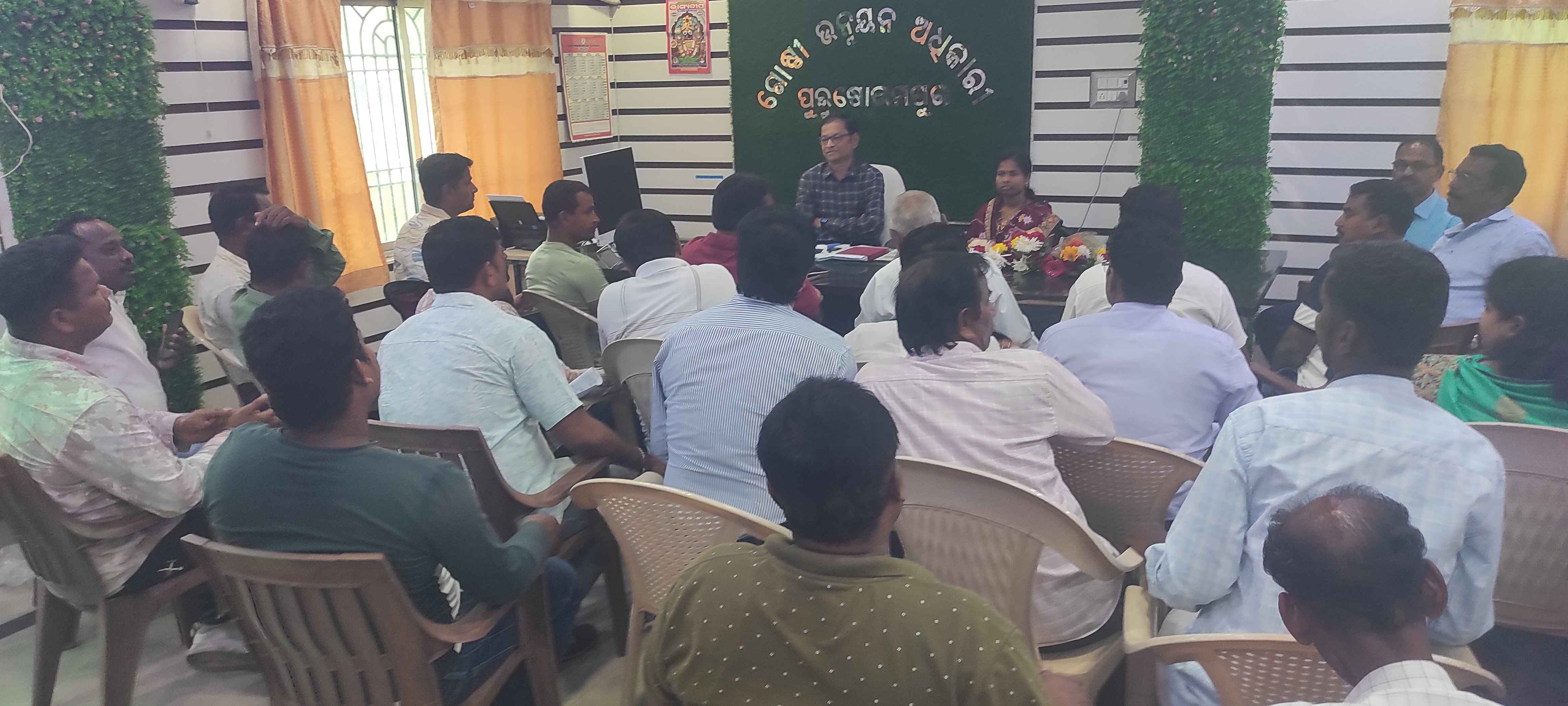 କଳାହାଣ୍ଡି ଜିଲ୍ଲା ଧର୍ମଗଡ଼ ବ୍ଲକ ର ବିଡ଼ିଓ ଥିବା ଶରତ ଚନ୍ଦ୍ର ପାତ୍ରଙ୍କ ପୁରୁଷୋତ୍ତମପୁର ବ୍ଲକ କୁ ବଦଳି ପରେ ସେଠାରୁ ରିଲିଭ ହୋଇ ପୁରୁଷୋତ୍ତମ ପୁର ବ୍ଲକରେବିଡ଼ିଓ ଭାବେ ଯୋଗଦେଇ କାର୍ଯ୍ୟ ଭାର ଗ୍ରହଣ କରିଥିଲେ | ତେବେ ଆଜି ପୂର୍ବାହ୍ନ ରେ ବ୍ଲକ ଅଧକ୍ଷା ପିଙ୍କି ବେହେରା ଙ୍କସହିତ ଯୁବନେତା ନିର୍ମଳ ଚନ୍ଦ୍ର ସାହୁ, 36ନଂ ଜିଲ୍ଲା ପରିଷଦ ସଦସ୍ୟ ଭଜ ମନ ବେହେରାବ, ଓ 37 ନଂ ଜିଲ୍ଲା ପରିଷଦ ସଦସ୍ୟ ରଞ୍ଜିତବେହେରା,ସମାଜସେବିଜଗତବନ୍ଧୁପଣ୍ଡା, ତାପସବେହେରା,କୋର ନାଥ ସ୍ବାଇଁ ଓ ଅନ୍ୟ ନେତା କର୍ମୀ ମାନଙ୍କ ସହିତ 26ଗୋଟି ପଞ୍ଚାୟତ ର ସରପଞ୍ଚ, ସମିତି ସଭ୍ୟ, ସଭ୍ୟ ମାନେ ଏକତ୍ରିତ ହୋଇ ବିଡ଼ିଓ ଙ୍କୁ ପୁଷ୍ପ ଗୁଚ୍ଛ ଦେଇ ସ୍ୱାଗତ କରିଥିଲେ | ଓ ମିଷ୍ଟାନ ଖୁଆଇଥିଲେ | ବିଡ଼ିଓ ମଧ୍ୟ ବ୍ଲକ ଅଧକ୍ଷା ଙ୍କ ସହ ସମସ୍ତ ଜନ ପ୍ରତିନିଧି ମାନଙ୍କ ସହିତ ସୌଜନ୍ୟ ମୂଳକ ଭାବେ କଥା ବାର୍ତ୍ତା କରି ଖୁସି ବ୍ୟକ୍ତ କରିଥିଲେ | ଏବଂ ଆସିଥିବା ସରପଞ୍ଚ ଓ ସମିତି ସଭ୍ୟ, ସଭ୍ୟା, ମାନଙ୍କ ନାମ ଓ ଗ୍ରାମ ପଚାରି ବୁଝି ଥିଲେ | ଏହା ସହ ଉପସ୍ଥିତ ଥିବା ବ୍ଲକ ନିର୍ବାହୀ ଯନ୍ତ୍ରୀ ସରୋଜ କୁମାର ସାବତ ଙ୍କୁ ରାଜ୍ୟ ସରକାର ଙ୍କ ପଞ୍ଚାୟତ ପାଇଁ ଆସିଥିବା ଅନୁଦାନ ଉପରେ ବୁଝାଇ ବାକୁ କହିଥିଲେ | ବିଭିନ୍ନ ଯୋଜନା ଗୁଡ଼ିକ କିପରି କେଉଁ ମାଧ୍ୟମରେ କାର୍ଯ୍ୟକରିହେବ ତାଉପରେ ମଧ୍ୟ ସମ୍ୟକ ଦିଗଦର୍ଶନ ଦେଇଥିଲେ | ତେବେ ଆଗାମୀ 25 ତାରିଖ ଦିନବ୍ଲକ ବୈଠକ ହଲରେ ହେବାକୁ ଥିବା ବିକଶିତ ଗାଁ, ବିକଶିତ ଓଡିଶା କାର୍ଯ୍ୟକ୍ରମ ରେସମସ୍ତେ ଉପସ୍ଥିତ ରହି ବିସ୍ତୃତ ଭାବେ ଆଲୋଚନା କରିବା ପାଇଁ କହିଥିଲେ |