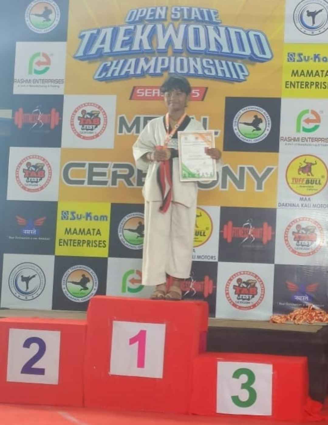 ସ୍ଥାନୀୟ ବିରଞ୍ଚି ନାରାୟଣ ପବ୍ଲିକ୍ ସ୍କୁଲର ଚତୁର୍ଥ ଶ୍ରେଣୀର ଛାତ୍ରୀ ସାଇଶ୍ରୀ ସ୍ବାଇଁ ଟାଏକୋଣ୍ଡୋରେ ବ୍ଲାକ ବେଲ୍ଟ ହାସଲ କରି ଅଞ୍ଚଳରେ ଚର୍ଚ୍ଚିତ ହେବା ସହ ବିଭିନ୍ନ ମହଲରେ ପ୍ରଶଂସିତ ହୋଇଥିବା ଜଣାଯାଇଛି । ସେ ପାରଳାଖେମୁଣ୍ଡିରେ ଅନୁଷ୍ଠିତ ବ୍ଲାକ୍ ବେଲ୍ଟ୍ ହାସଲ ପରୀକ୍ଷାରେ ଉତ୍ତୀର୍ଣ୍ଣ ହୋଇ ଏହି କୃତିତ୍ବର ଅଧିକାରିଣୀ ହୋଇଥିଲେ । ଏଥି ସହ ବ୍ରହ୍ମପୁରଠାରେ ଆୟୋଜିତ ଓପନ୍ ଷ୍ଟେଟ୍ ଟାଏକୋଣ୍ଡୋ ଚମ୍ପିଆନସିପ୍ ସିଜନ-ଫାଇଭରେ ପ୍ରଥମ ସ୍ଥାନ ଅଧିକାର କରି ସ୍ବର୍ଣ୍ଣ ପଦକ ହାସଲ ପୂର୍ବକ ଅଞ୍ଚଳ ପାଇଁ ଗର୍ବ ଓ ଗୌରବ ପାଲଟିଛନ୍ତି । ତାଙ୍କର ଏହି କୃତିତ୍ବ ପାଇଁ ଏଠାକାର ବୁଦ୍ଧଖୋଲ ମହୋତ୍ସବ-୨୦୨୫ରେ ତାଙ୍କୁ ମତ୍ସ୍ୟ ଓ ପଶୁ ସମ୍ପଦ ବିକାଶ ମନ୍ତ୍ରୀ ଗୋକୁଳାନନ୍ଦ ମଲ୍ଲିକଙ୍କ ଦ୍ବାରା ଭବ୍ଯ ସମ୍ବର୍ଦ୍ଧନା ଜ୍ଞାପନ କରାଯାଇଥିଲା। ପ୍ରକାଶ ଯୋଗ୍ୟ ଯେ, କୋଚ୍ ନିରଞ୍ଜନ ଗୌଡଙ୍କ ଦ୍ବାରା ତାଲିମ ପାଇ ସାଇଶ୍ରୀ ଏହି ବ୍ଲାକବେଲ୍ଟ ହାସଲ କରିବାରେ ବୁଗୁଡା ଅଞ୍ଚଳର ପ୍ରଥମ ବାଳିକା ଭାବେ ବିବେଚିତ ହୋଇଥିବା ଜଣାଯାଇଛି।