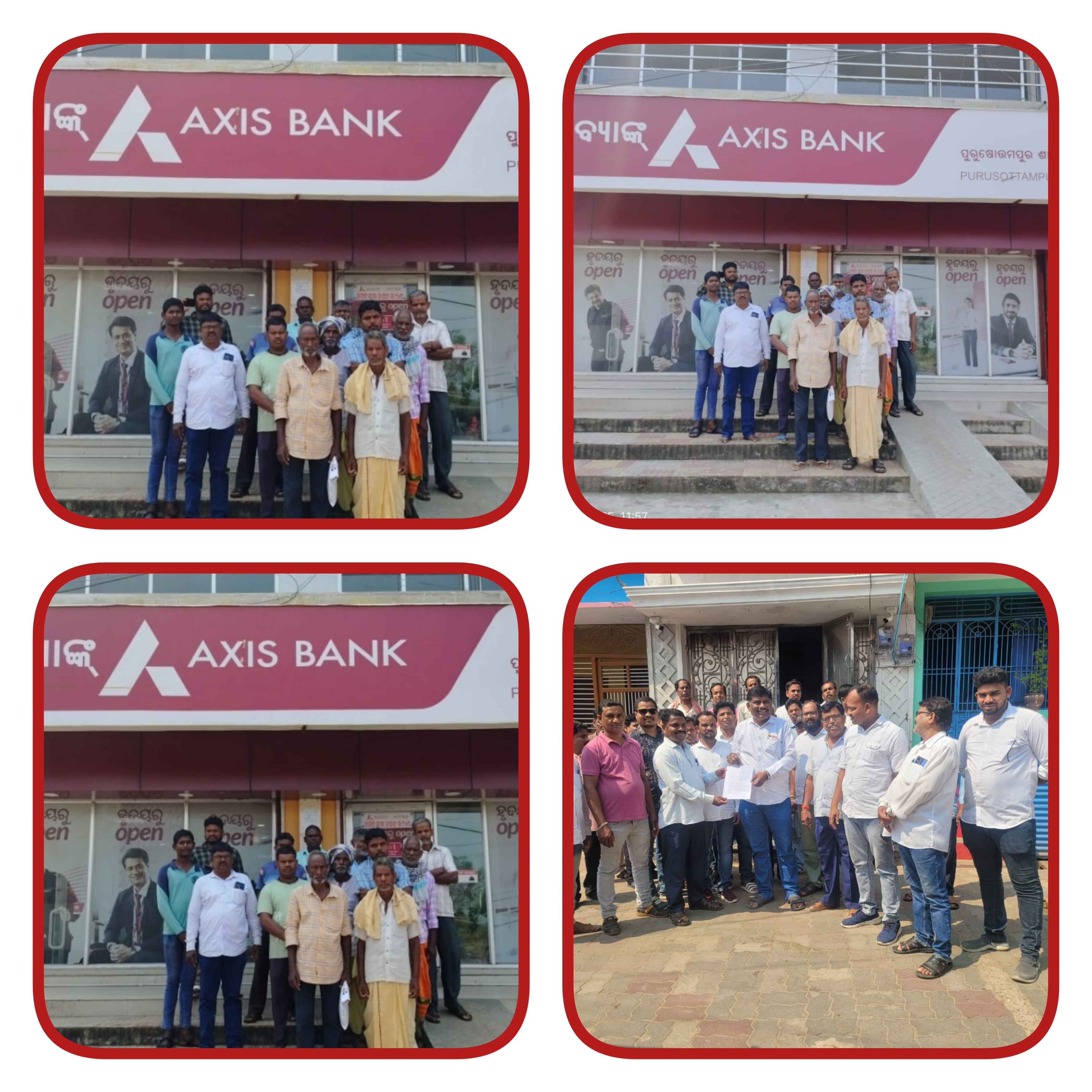ଲଘୁଚାପ ଜନିତ କ୍ଷତି ପୂରଣ ଟଙ୍କା ଆକ୍ସିସ ବେଙ୍କ ଦେଇନଥିବାରୁ ବେଙ୍କ ଆଗ ରେ ଚାଷୀଙ୍କ ଆନ୍ଦୋଳନ  |