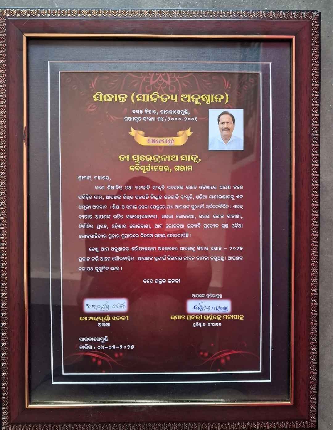 ଶବର ସମାଜର ସାଂସ୍କୃତିକ କ୍ଷେତ୍ରରେ କାର୍ଯ୍ୟରତ କବିସୂର୍ଯ୍ୟନଗରର ଜନଜାତି ଗବେଷକ ଡକ୍ଟର ସୁରେନ୍ଦ୍ର ନାଥ ସାହୁଙ୍କୁ ଅନୁଷ୍ଠାନର ସର୍ବୋଚ୍ଚ ସମ୍ମାନ ‘ସିଦ୍ଧାନ୍ତ ସମ୍ମାନ-୨୦୨୫’ରେ ପୁରସ୍କୃତ ଓ ସମ୍ବର୍ଦ୍ଧିତ କରିଥିଲେ ଗଜପତି ଜିଲ୍ଲାପାଳ ଶ୍ରୀ ବିଜୟ କୁମାର ଦାସ I ଏହା ସହିତ ଶ୍ରୀ ଫାଲଗୁନୀ ଶବର, ଶ୍ରୀ ଲାବଣ୍ୟ ଶବର, ଶ୍ରୀ କୃଷ୍ଣ ଶବର, ଶ୍ରୀ ତରଣୀସେନ ଦାସ, ଶ୍ରୀ ଅମ୍ରିତ ପାଣିଗ୍ରାହୀ, ଶ୍ରୀମତୀ ଗାୟତ୍ରୀ ଶବର ଓ ଶ୍ରୀମତୀ ହାରାବତୀ ଗମାଙ୍ଗଙ୍କୁ ସିଦ୍ଧାନ୍ତ ପ୍ରତିଭା ସମ୍ମାନରେ ସମ୍ବର୍ଦ୍ଧିତ କରାଯାଇଥିଲା I