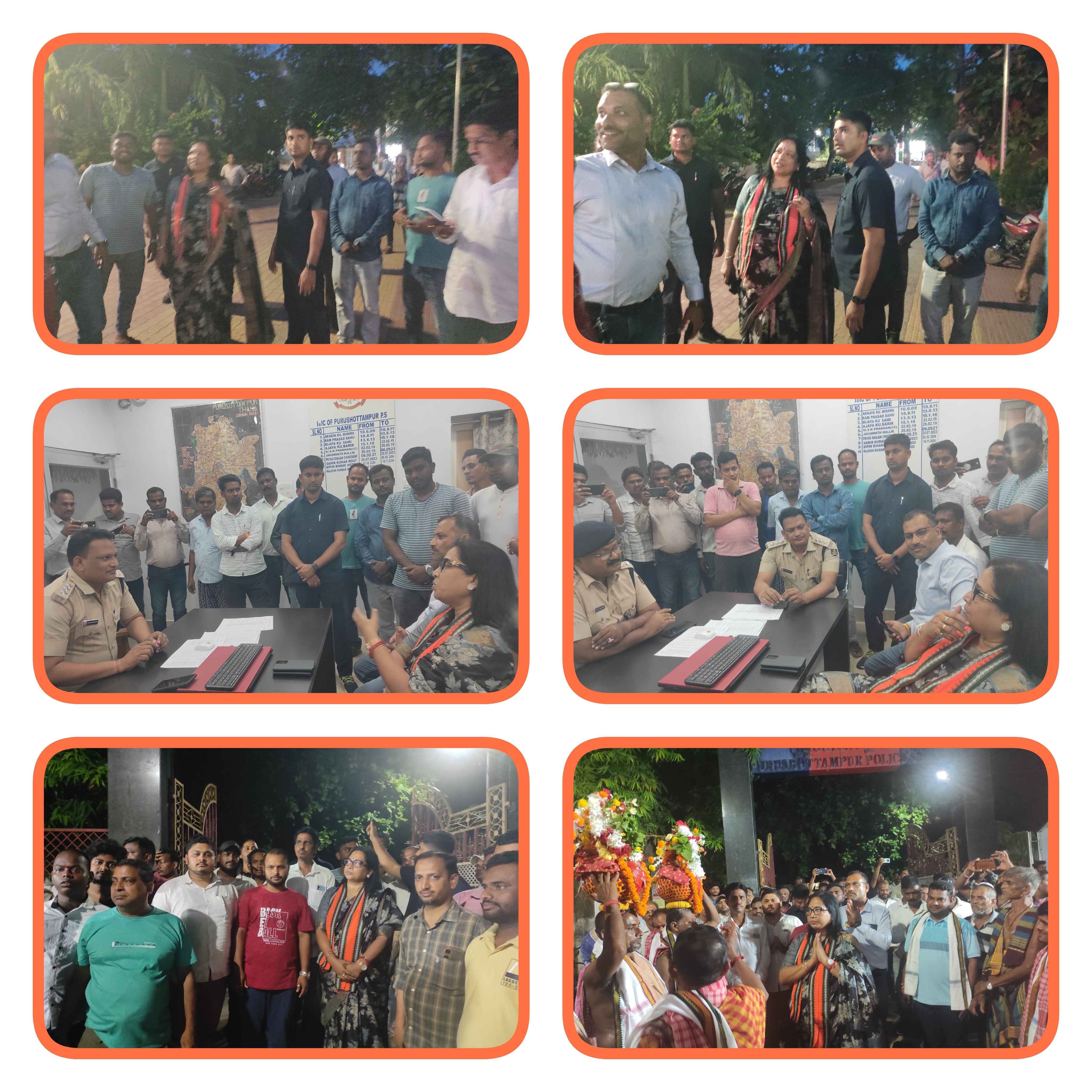 ଆସ୍କା ସାଂସଦ ଅନିତା ଶୁଭ ଦର୍ଶିନୀ ଙ୍କ ଅଚାନକ ପୁରୁଷୋତ୍ତମପୁର ଥାନା ପରିଦର୍ଶନ କରି ଆଇନ ଶୃଙ୍ଖଳା ଉପରେ ପରଖି ବୁଝୁଥିବା ନେଇ ସମସ୍ତ ଜନ ସାଧାରଣଙ୍କ ପ୍ରଶଂସାର ପାତ୍ର ପାଲଟିଥିବା ନେଇ ସବୁଠି ଚର୍ଚ୍ଚା ଜୋର ଧରିଛି । ସାଂସଦ ଶ୍ରୀମତୀ ଅନୀତା ଶୁଭଦର୍ଶନୀ ପୁରୁଷୋତ୍ତମପୁର ଥାନାକୁ ଅଚାନକ ପରିଦର୍ଶନରେ ଆସି ଥାନାକୁ ଆସିଥିବା ଅଭିଯୋଗ କାରିଙ୍କ ନିକଟକୁ ଯାଇ ଥାନା କୁ କଣ କାମରେ ଆସିଥିବା ପଚାରି ବୁଝିଥିଲେ । ସମସ୍ତଙ୍କ ଅଭିଯୋଗ ଶୁଣିବା ପରେ ଥାନା ଅଧିକାରୀ ରାଜେଶ କୁମାର ନାୟକ ଓ ଏସଡିପିଓ ଡ଼. ଦୀପକ କୁମାର ମିଶ୍ର ଙ୍କ ସହ ମିଶି ଅଞ୍ଚଳର ଆଇନ ଶୃଙ୍ଖଳା ପରିସ୍ଥିତି ଉପରେ ଅନୁଧ୍ୟାନ କରି ଥିଲେ । ଶାନ୍ତି ଶୃଙ୍ଖଳାକୁ ଅଧିକ ଗୁରୁତ୍ଵ ଦେବା, ଅସାମାଜିକ ବ୍ୟକ୍ତି ଉପରେ କଡା ନଜର ରଖିବା, ବେଆଇନ ଖୋଲାଚୋରା ମଦ ବିକ୍ରି କୁ ରୋକିବା, ଜନତା କୁ ସୁରକ୍ଷା ଦେବା ଉପରେ ଆଲୋଚନା କରିଥିଲେ । ସାଂସଦଙ୍କ ସହ ବରିଷ୍ଟ ବିଜେପି ନେତା ତଥା ଘୁମୁସର ଜିଲ୍ଲା ସାଧାରଣ ସମ୍ପାଦକ ଅନିଲ କୁମାର ପଣ୍ଡା, ସାଂସଦଙ୍କ କ୍ଷେତ୍ର ସଂଯୋଜୋକ ଯଜ୍ଞ ନାରାୟଣ ଦାଶ, ବିଜେପି ଯୁବନେତା ଓ ସଙ୍ଗଠକ ସୀତାରାମ ପାଣିଗ୍ରାହୀ, କବିସୂର୍ଯ୍ୟନଗର ପୂର୍ବତନ ବ୍ଲକ ଅଧ୍ୟକ୍ଷ ପିତାମ୍ବର ସେଠି, ଏନ୍ଏସି କାଉନସିଲର ଭାସ୍କର ବେହେରା, କେ ପ୍ରମୋଦ କୁମାର ଆଚାରୀ, ବିଜେପି ନଗର ସମ୍ପାଦକ ଟୁକୁନା ବେହେରା, କାଉନସିଲର ପ୍ରତିନିଧି ବିଶ୍ବଭୂଷଣ ମହାପାତ୍ର, ପୂର୍ବତନ ବିଜେପି ନଗର ସଭାପତି କୃଷ୍ଣ ଚନ୍ଦ୍ର ନାୟକ, ଛାତ୍ର ସଂଘଠକ୍ ଜି.ଲିଙ୍ଗରାଜ ଆଚାରୀ , ରାଧା କୃଷ୍ଣ ବେହେରା, ସଂଜୟ ନାୟକ, ସୁରେଶ ମହାନ୍ତି, ପ୍ରକାଶ ବେହେରା ପ୍ରମୁଖ ବିଜେପି କର୍ମୀ ଉପସ୍ଥିତି ଥିଲେ । ସାଂସଦଙ୍କ ପୁରୁଷୋତ୍ତମପୁର ଗ୍ରସ୍ତ ଶୁଣି ବଜାରର ବଣିକ ସଂଘ, ଯୁବ ଓ ଛାତ୍ର ବିଜେପି କର୍ମୀ ପ୍ରମୁଖଙ୍କ ସହ, ବହୁ ଜନସାଧାରଣ ସାଂସଦଙ୍କୁ ମିଶି ସ୍ଵାଗତ ସମ୍ବର୍ଦ୍ଧନା ଦେଇ ସ୍ଵାଗତ କରିଥିଲେ । ଥାନା ରେ କଥା ହୋଇ ବାହାରିଲା ପରେ ନଗର ଭ୍ରମଣ ରେ ବାହାରିଥିବା ପଞ୍ଚ ଠାକୁରାଣୀ ଙ୍କୁ ଦର୍ଶନ କରିମାଆଙ୍କ ଆଶୀର୍ବାଦ ଭିକ୍ଷା କରିଥିଲେ | ପରେ ପୁରୁଷୋତ୍ତମପୁର ଡାକ ବଙ୍ଗଳା ରେ ଦଳୀୟ କର୍ମୀ ଙ୍କ ସହିତ ପୁରୁଷୋତ୍ତମପୁର ବ୍ଲକ ର ଡେଭେଲପମେଣ୍ଟ ଉପରେ କର୍ମୀ ଙ୍କ ସହିତ କଥା ହୋଇ ଥିଲେ | ଯାତ୍ରୀଙ୍କ ସମସ୍ୟା କୁ ଉପଲବ୍ଧ କରି ଜଣେ ଗଣମାଧ୍ୟମ ପ୍ରତିନିଧି ଙ୍କ ଅନୁରୋଧ ରେ ମା"ତାରାତାରିଣୀ ଙ୍କ ପାହାଡ଼ ଉପରେ ମୋବାଇଲ ନେଟୱାର୍କ କାମ କରୁନଥିବା କହିବା ପରେ ସାଂସଦ ସଙ୍ଗେ, ସଙ୍ଗେ ବିଏସଏନଏଲ ବିଭାଗ ର ଉଚ୍ଚ କର୍ତ୍ତୃପକ୍ଷ ଙ୍କ ସହିତ କଥା ହୋଇ ତୁରନ୍ତ ଏହାର ସମାଧାନ ୨ ମାସ ଭିତରେ କାର୍ଯ୍ୟକ୍ଷମ କରିବାକୁ ନୀର୍ଦ୍ଧେଶ ଦେଇଥିଲେ| ଏବଂପୁରୁଷୋତ୍ତମ ପୁର ସହର ର ପାନୀୟ ଜଳ ଏବଂ ବିଦ୍ୟୁତ ସମସ୍ୟା ଦୂର କରିବାକୁ ଜିଲ୍ଲାପାଳ ଦିବ୍ୟଜ୍ୟୋତି ପରିଡା ଙ୍କ ସହିତ କଥା ହୋଇ ତାର ନିରା କରଣ ଉପରେ ନିର୍ଦେଶ ଦେଇଥିଲେ | ତତ ସହିତ ଅତିଶୀଘ୍ର ପୁରୁଷୋତ୍ତମପୁର ବ୍ଲକ ରେ କେନ୍ଦ୍ରୀୟ ବିଦ୍ୟାଳୟ ର ଜାଗା ଚି଼ହ୍ନଟ ପ୍ରକ୍ରିୟା ଆରମ୍ଭ କରାଯିବ ଏବଂ ଆଚୁଲି ପଞ୍ଚାୟତ ର ଚଢିଆ ପଲ୍ଲୀଠାରେ ମିନି ଖେଳ ପଡିଆ ଜାଗା ଚି଼ହ୍ନଟ କରି ତୁରନ୍ତ କାର୍ଯ୍ୟ ଆରମ୍ଭ କରିବାକୁ ସରକାରୀ ଉଚ୍ଚ କତୃପକ୍ଷ ଙ୍କୁ ମଧ୍ୟ ନିର୍ଦେଶ ଦେଇ ଥିଲେ | ସାଂସଦଙ୍କ ଏହି କାର୍ଯ୍ୟକୁ ଦେଖି ସହର ର ଲୋକ ମାନଙ