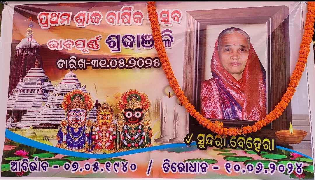 ସୁନ୍ଦରୀ ବେହେରାଙ୍କ ପ୍ରଥମ ଶ୍ରାଦ୍ଧ ବାର୍ଷିକୋତ୍ସବରେ ବହୁ ବିଭିନ୍ନ ବର୍ଗର ବ୍ୟକ୍ତିମାନଙ୍କ ଭାବପୂର୍ଣ୍ଣ ଶ୍ରଦ୍ଧାଞ୍ଜଳୀ।