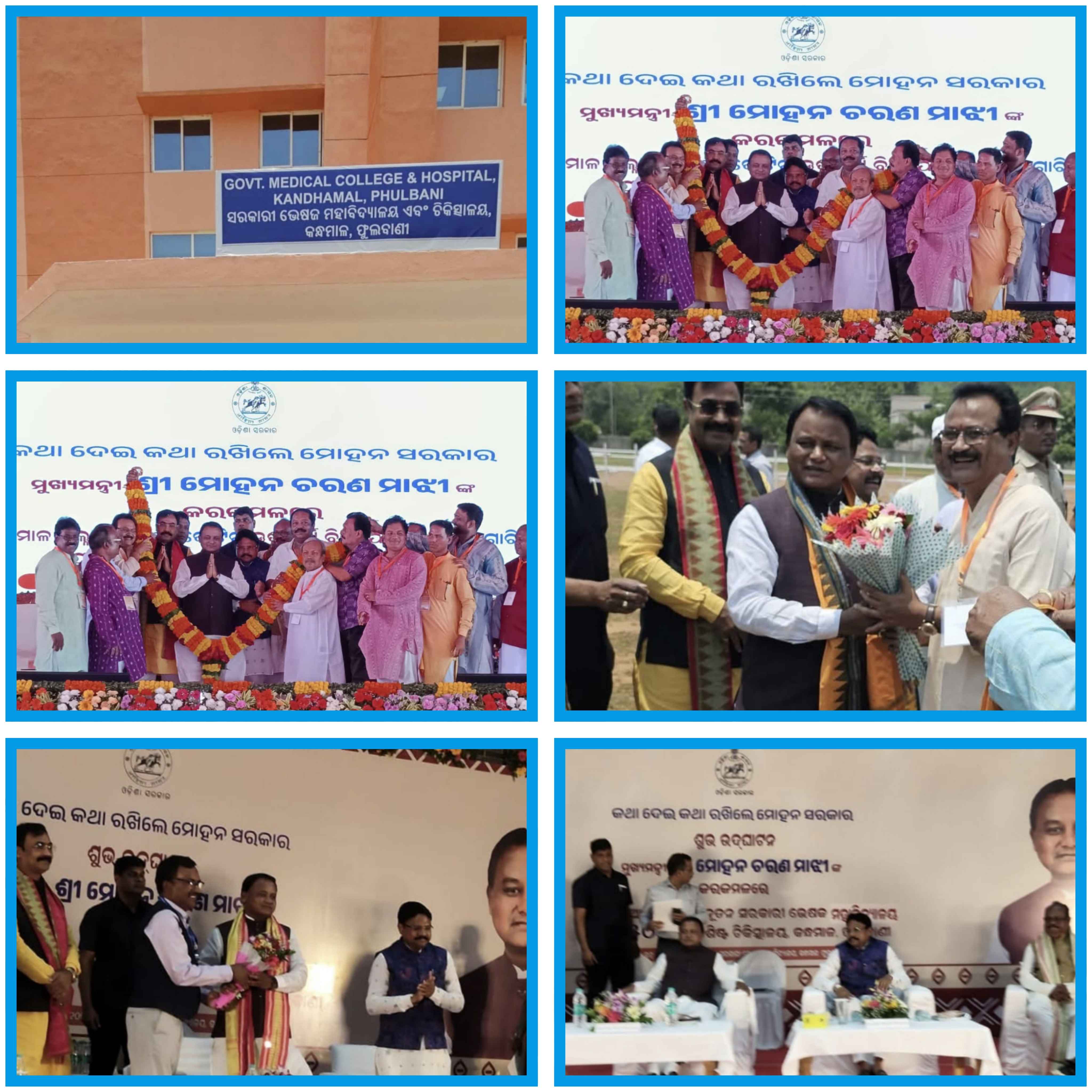 ବହୁ ପ୍ରତୀକ୍ଷିତ ଫୁଲବାଣୀ ସରକାରୀ ଭେଷଜ ମହାବିଦ୍ୟାଳୟ ଓ ହସ୍ପିଟାଲ ଉଦଘାଟନ କଲେ ମୁଖ୍ୟମନ୍ତ୍ରୀ ମୋହନ ଚରଣ ମାଝୀ। ଶନିବାର ଦିନ ପ୍ରାୟ ୧୧ଟା ବେଳେ ମୁଖ୍ୟମନ୍ତ୍ରୀ ମାଦିକୁନ୍ଦାସ୍ଥିତ ରିଜର୍ଭ ପଡ଼ିଆରେ ପହଞ୍ଚିଥିଲେ। ଏହାପରେ ଫୁଲବାଣୀ ସହର ଉପକଣ୍ଠ ତିଲକପଡା ଠାରେ ନବନିର୍ମିତ ମେଡିକାଲ କଲେଜକୁ ଯାଇ ସେଠାରେ ସେ ମେଡିକାଲ କଲେଜ ଉଦଘାଟନ କରିବା ପରେ ମହାବିଦ୍ୟାଳୟ ପ୍ରେକ୍ଷାଳୟରେ ଆୟୋଜିତ ଏକ ସଭାରେ ଡାକ୍ତର, ନର୍ସ ଓ ଅନ୍ୟାନ୍ୟ କର୍ମଚାରୀଙ୍କୁ ଉଦବୋଧନ ଦେଇଥିଲେ। ଆୟୋଜିତ କାର୍ଯ୍ୟକ୍ରମରେ ଅନ୍ୟମାନଙ୍କ ମଧ୍ୟରେ ସ୍ଵାସ୍ଥ୍ୟମନ୍ତ୍ରୀ ଡ. ମୁକେଶ ମହାଲିଙ୍ଗ, ସାଂସଦ ସୁକାନ୍ତ କୁମାର ପାଣିଗ୍ରାହୀ, ଫୁଲବାଣୀ ବିଧାୟକ ଉମାଚରଣ ମଲ୍ଲିକ, ଜିଲ୍ଲାପାଳ ଅମ୍ରିତ ଋତୁରାଜ, ମେଡିକାଲ କଲେଜ ଡିନ୍ ଡ. ନରେନ୍ଦ୍ର ବେହେରା ପ୍ରମୁଖ ଉପସ୍ଥିତ ଥିଲେ। ଏହି ନବନିର୍ମିତ ମେଡିକାଲ କଲେଜରେ ୧୦୦ ଜଣ ଛାତ୍ରଛାତ୍ରୀ ପଢିବା ବ୍ୟବସ୍ଥା ଥିବାବେଳେ ଏଠାରେ ୬୫୦ ଶଯ୍ୟା ବିଶିଷ୍ଟ ହସ୍ପିଟାଲ ରହିଛି। ଚଳିତ ଶିକ୍ଷା ବର୍ଷରୁ ଏଠାରେ ପାଠପଢା ଆରମ୍ଭ ହେବ ବୋଲି କୁହାଯାଇଛି। ମୁଖ୍ୟମନ୍ତ୍ରୀଙ୍କ ଏହା ପ୍ରଥମ ଫୁଲବାଣୀ ଗସ୍ତ। ଏନେଇ ଜନସାଧାରଣଙ୍କ ମଧ୍ୟରେ ପ୍ରବଳ ଉତ୍କଣ୍ଠା ରହିଛି l