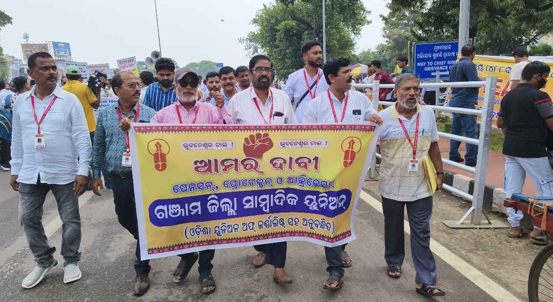 ଓଡ଼ିଶା ସାମ୍ବାଦିକ ସଂଘ (ଓୟୂଜେ) ପକ୍ଷରୁ ବିଭିନ୍ନ ଦାବି ନେଇ ରାଜ୍ୟ ବିଧାନସଭା ଚାଲିଥିବା ଦିବସ ମଧ୍ୟରେ ବିଧାନସଭା ସମ୍ମୁଖରେ ଏକ ଗଣଧାରଣା କାର୍ଯ୍ୟକ୍ରମ ସଫଳତାର ସହିତ ସମାପ୍ତ ହୋଇଥିଲା। ରାଜ୍ୟ ସଭାପତି ପ୍ରସନ୍ନ ମହାନ୍ତିଙ୍କ ନେତୃତ୍ୱରେ ଚାଲିଥିବା କାର୍ଯ୍ୟକ୍ରମରେ ରାଜ୍ୟର ୩୦ ଗୋଟି ଜିଲ୍ଲା ଶାଖା ଗୁଡିକରୁ ୫ ଶହରୁ ଊର୍ଦ୍ଧ୍ବ ସାମ୍ବାଦିକମାନେ ଆସି ଧାରଣାରେ ଯୋଗଦେଇଥିବାର ଦେଖିବାକୁ ମିଳିଥିଲା। ମୁଖ୍ୟତ ସାମ୍ବାଦିକଙ୍କୁ ଭତ୍ତା,ସୁରକ୍ଷା ଓ ଅଧିସ୍ଵିକୃତି ପ୍ରଦାନକୁ ନେଇ ସଂଘ ତରଫରୁ କରାଯାଇଥିବା ଧାରଣା କାର୍ଯ୍ୟକ୍ରମରେ ବିରୋଧୀ କଂଗ୍ରେସ ନେତା ଜୟପୁର ବିଧାୟକ ତାରାପ୍ରସାଦ ବାହିନୀପତିଙ୍କ ସମେତ ବିଜେଡିର ଅରୁଣ ସାହୁ,ଅନନ୍ତ ନାରାୟଣ ଜେନା,ସଞ୍ଜୀବ ମଲ୍ଲିକ,ରୋମାଞ୍ଚ ରଂଜନ ବିଶ୍ବାଳ,ସାରଦା ଜେନା,ପ୍ରଦୀପ ସାହୁ,ମାଧବ ଧଡା,ରୁପେଶ ପାଣିଗ୍ରାହୀ ପ୍ରମୁଖ ଯୋଗଦେଇ ସଂଘ ତରଫରୁ କରାଯାଇଥିବା ଆନ୍ଦୋଳନ ସମେତ ଉକ୍ତ ୩ ଗୋଟି ଯଥୋଚିତ ଦାବିକୁ ସମର୍ଥନ ଜଣାଇବା ସହିତ ନିଜର ନୈତିକ ସମର୍ଥନ ଦେବା ଏଵଂ ବିଧାନସଭାରେ ବିଷୟକୁ ବଳିଷ୍ଠ ଭାବରେ ଉଠାଇବାକୁ ପ୍ରତିଶୃତି ଦେଇଥିବାବେଳେ ବିରୋଧୀ ଦଳ ମୁଖ୍ୟ ସଚେତକ ପ୍ରମିଳା ମଲ୍ଲିକ ମଧ୍ୟ ବିଧାନସଭାରେ ସରକାରଙ୍କ ଦୃଷ୍ଟି ଆକର୍ଷଣ କରିବା ସହିତ ଅବିଳମ୍ବେ ଏ ଦିଗରେ ଉଚିତ୍ ବ୍ୟବସ୍ଥା ନେବାକୁ ଦାବି କରିଥିଲେ। ଏଥିସହ ବିଧାୟକ ଭାସ୍କର ମଡେଇ ସାମ୍ବାଦିକ ସଂଘର ଦାବୀ ଉପରେ ଆଲୋଚନା କରିଥିଲେ। ଧାରଣାବେଳେ ବରିଷ୍ଠ ସାମ୍ବାଦିକ ରବିଦାସ,ଉପସଭାପତି ରାଜେଶ ପଟ୍ଟନାୟକ, କିଶାନ ରାଉତ୍,ପ୍ରମୋଦ ସାମନ୍ତରାୟ,ସମ୍ପାଦକ ପ୍ରସନ୍ନ ପାଇକରାୟ,କୋଷାଧ୍ୟକ୍ଷ ଅମୂଲ୍ୟ ସ୍ୱାଇଁ,ସ°ଯୋଜକ ସନ୍ତୋଷ ସି°ଦେଓ,ଦେବପ୍ରସାଦ ଦାସ, ବଦ୍ରି ନାରାୟଣ ମିଶ୍ର,ଆଦିତ୍ୟ ମେକାପ, ରୂପେଶ ସାହୁ,ରାମନାରାୟଣ ଶତପଥୀ,ଗଂଜାମ ଜିଲ୍ଲା ସାମ୍ବାଦିକ ସଂଘ ସଭାପତି ସଦାଶିବ ପଣ୍ଡା ପ୍ରମୁଖ ଉପସ୍ଥିତ ରହି ଉଦବୋଧନ ଦେବାସହିତ ସାମ୍ବାଦିକମାନଙ୍କ ନ୍ୟାଯ୍ୟଦାବିକୁ ସରକାର ତୁରନ୍ତ ମାନିନେଇ ବିଚାରପୂର୍ବକ ଉପଯୁକ୍ତ ପଦକ୍ଷେପ ନେବେ ବୋଲି ଆଶା ପୋଷଣ କରିଥିଲେ। ପରେ ରାଜ୍ୟ ସଂଘ ସଭାପତି ପ୍ରସନ୍ନ ମହାନ୍ତିଙ୍କ ନେତୃତ୍ୱରେ ଏକ ପ୍ରତିନିଧିଦଳ ମୁଖ୍ୟମନ୍ତ୍ରୀ ମୋହନ ଚରଣ ମାଝୀଙ୍କୁ ଭେଟି ବିଭିନ୍ନ ରାଜ୍ୟରେ ସାମ୍ବାଦିକଙ୍କୁ ମିଳୁଥିବା ପେନସନ୍ ରାଶିର ଏକ ତୁଳନାତ୍ମକ ଚିତ୍ରଥିବା ସ୍ମାରକପତ୍ର ମୁଖ୍ୟମନ୍ତ୍ରୀଙ୍କୁ ପ୍ରଦାନ କରିଥିଲେ। ଦାବିପତ୍ର ଗ୍ରହଣକରି ମୁଖ୍ୟମନ୍ତ୍ରୀ ଆଶ୍ଵାସନା ଦେବାସହ ସାମ୍ବାଦିକମାନଙ୍କ ଦାବିଗୁଡିକୁ ନେଇ ଉପଯୁକ୍ତ ସମୟ ଠିକ୍ ନିଷ୍ପତି ନିଆଯିବ ବୋଲି ପ୍ରତିଶୃତି ଦେବାପରେ ସଂଘ ପକ୍ଷରୁ ଚାଲୁଥିବା ଧାରଣାକୁ ବନ୍ଦ କରାଯାଇଥିଲା। ଧାରଣା କାର୍ଯ୍ୟକ୍ରମରେ ଗଂଜାମ ଜିଲ୍ଲା ପୂର୍ବତନ ସଭାପତି ପ୍ରକାଶ ପାଣିଗ୍ରାହୀଙ୍କ ତତ୍ବାବଧାନରେ ଏଵଂ ଜିଲ୍ଲା ସଭାପତି ସଦାଶିବ ପଣ୍ଡାଙ୍କ ନେତୃତ୍ୱରେ ଜାତୀୟ କାର୍ଯ୍ୟକାରିଣୀ ସଦସ୍ୟ ବାଳକୃଷ୍ଣ ପଟ୍ଟନାୟକ,ଜିଲ୍ଲା ସାଧାରଣ ସମ୍ପାଦକ ସନ୍ତୋଷ କୁମାର ମିଶ୍ର,ସମ୍ପାଦକ ମେଘନାଦ ଦାସ ଓ ସନ୍ତୋଷ କୁମାର ପଣ୍ଡା ପୂର୍ବତନ ଜିଲ୍ଲା ସଭାପତି ତଥା ଉପଦେଷ୍ଟା ହରିହର ପାତ୍ର,ଶଙ୍କର ପ୍ରସାଦ ପ୍ରଧାନ,ସୂର୍ଯ୍ୟନାରାୟଣ ପାଣିଗ୍ରାହୀ, ଶ୍ରୀପଦ ଦାସ,ସୁଶାନ୍ତ କୁମାର ସାହୁ, ଅଜିତ କ