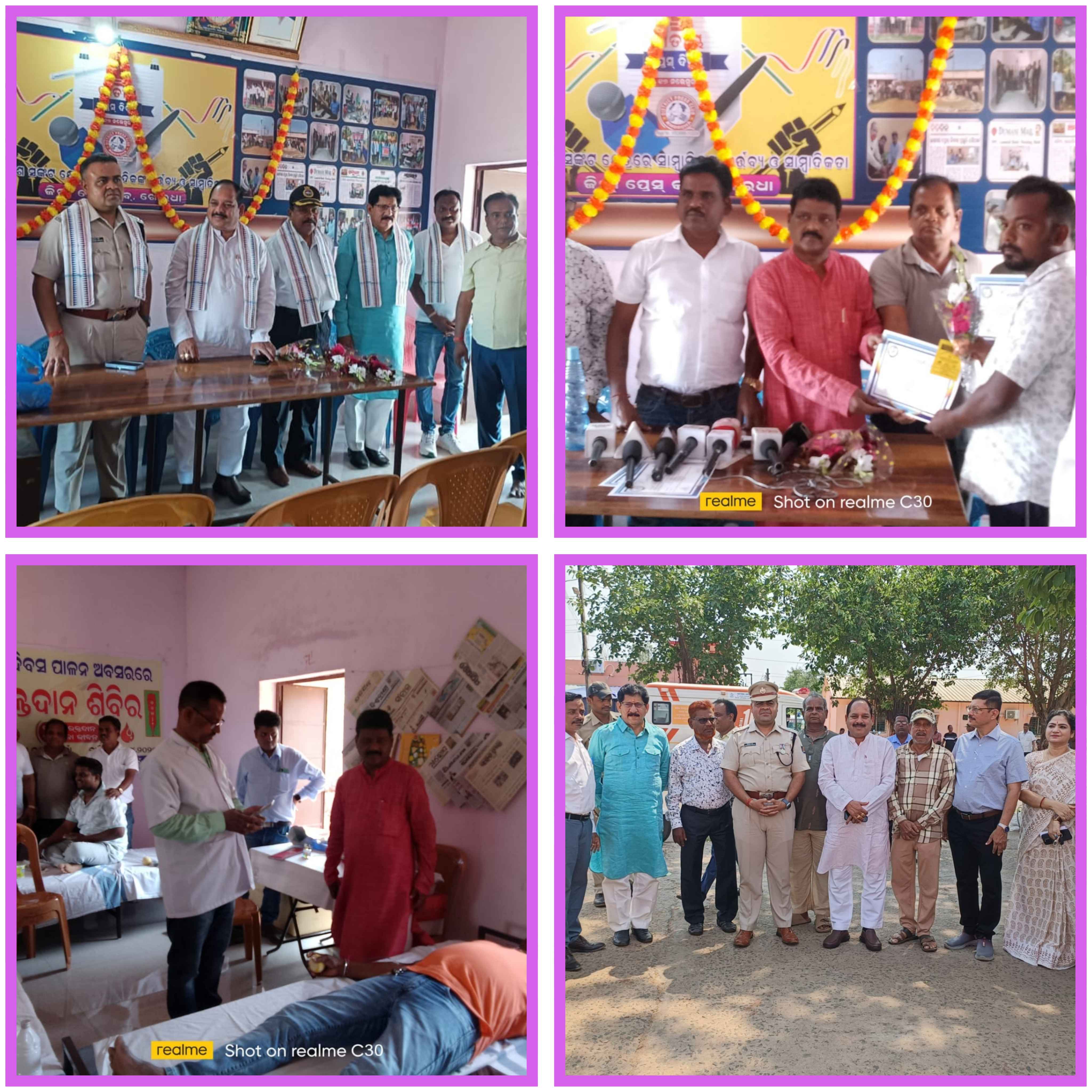ଓଡ଼ିଶା ଦିଵସ ଉପଲକ୍ଷେ ଜିଲ୍ଲ ମୁଖ୍ୟ ଚିକିତ୍ସାଳୟରେ ରୋଗୀ ମାନଙ୍କୁ ଫଳ ବଣ୍ଟନ ଏବଂ ପ୍ରେସ କ୍ଲବ ରେ ରକ୍ତଦାନ ଶିବିର ଆୟୋଜନ କଲା ସମ୍ମିଳିତ କର୍ମଜୀବି ସାମ୍ବାଦିକ ସଙ୍ଘ