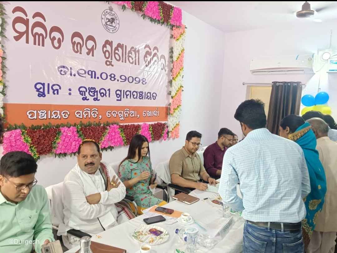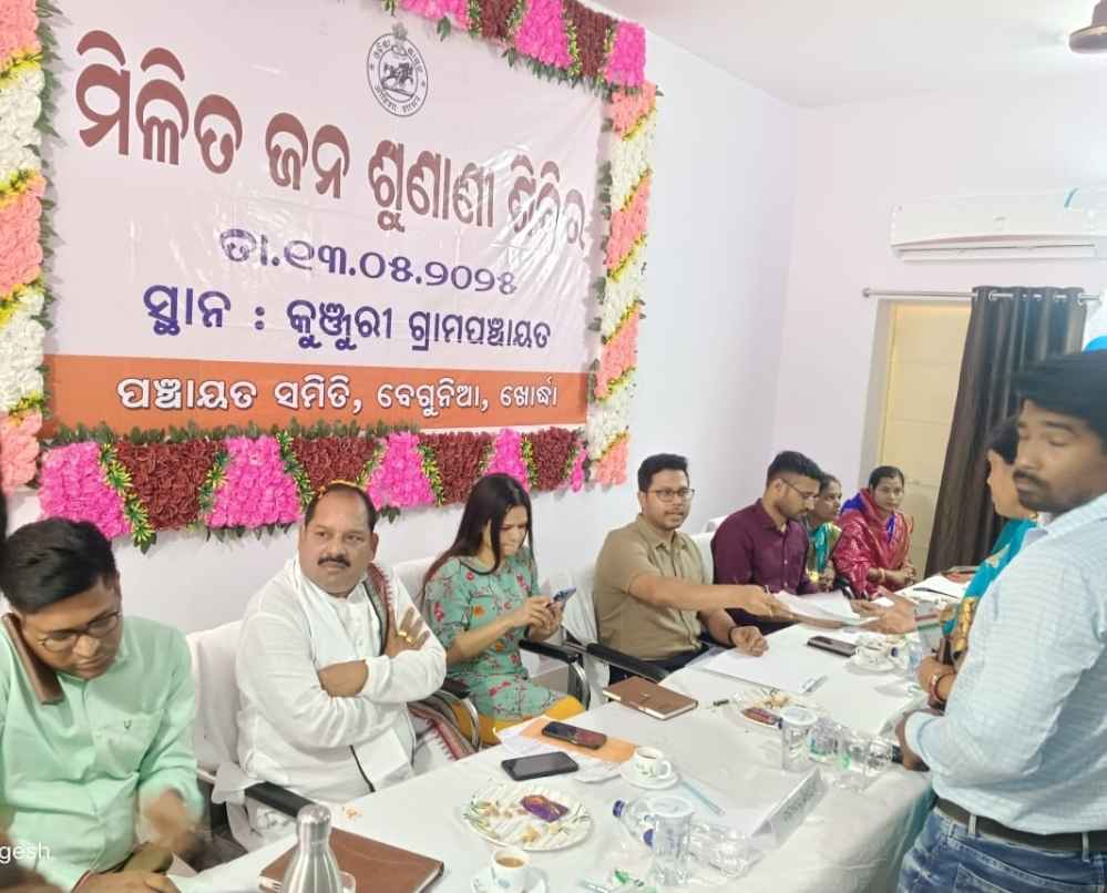 ବେଗୁନିଆ କୁଞ୍ଜୂରି ପଞ୍ଚାୟତ ରେ ଖୋର୍ଦ୍ଧା ଜିଲ୍ଲାପାଳ ଓ ଆରକ୍ଷୀ ଅଧିକ୍ଷକଙ୍କ ମିଳିତ ଅଭିଯୋଗ ଶୁଣାଣି ଶିବିର ଅନୁଷ୍ଠିତ