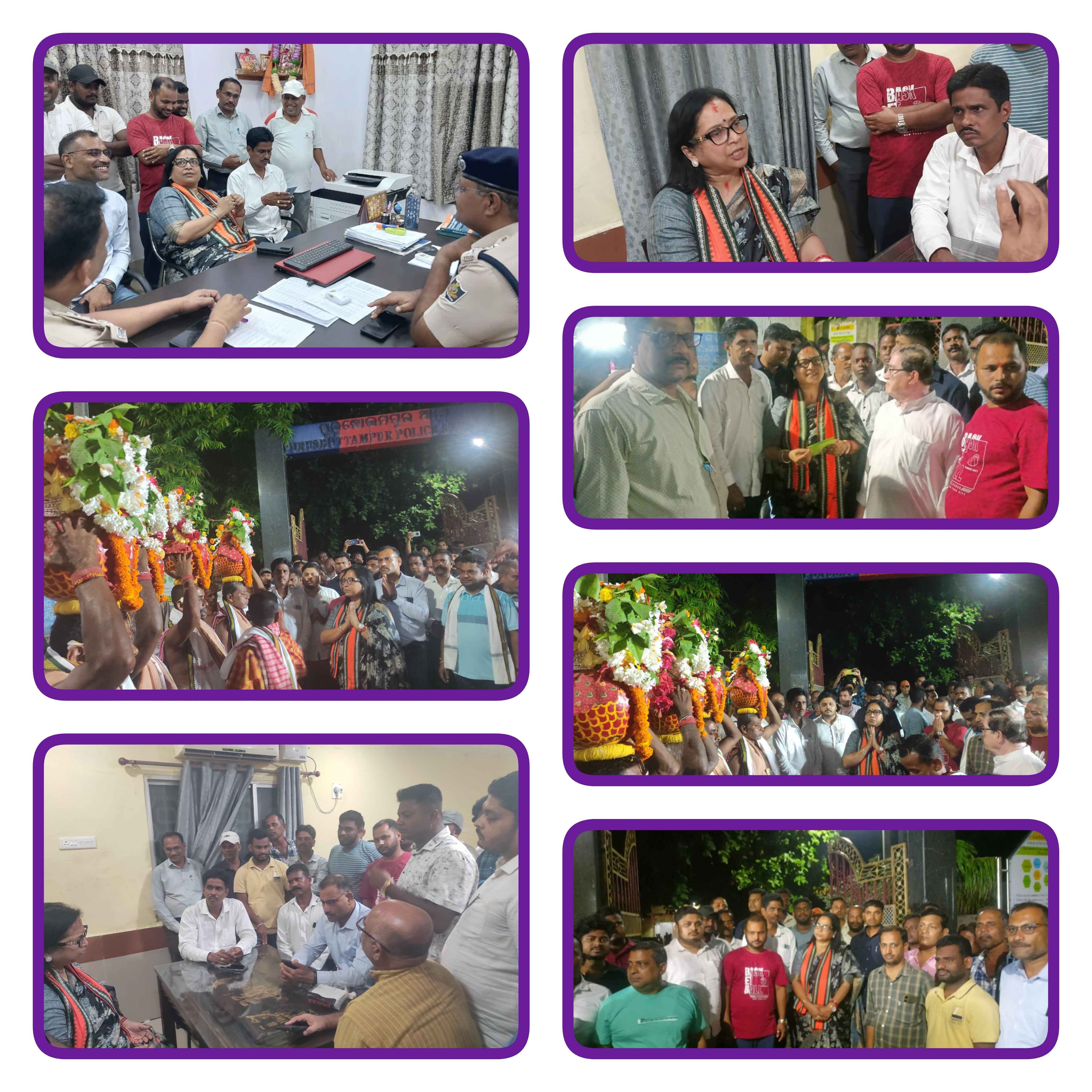 ଆସ୍କା ସାଂସଦ ଅନିତା ଶୁଭ ଦର୍ଶିନୀ ଙ୍କ ଅଚାନକ ପୁରୁଷୋତ୍ତମପୁର ଥାନା ପରିଦର୍ଶନ କରି ଆଇନ ଶୃଙ୍ଖଳା ଉପରେ ପରଖି ବୁଝୁଥିବା ନେଇ ସମସ୍ତ ଜନ ସାଧାରଣଙ୍କ ପ୍ରଶଂସାର ପାତ୍ର ପାଲଟିଥିବା ନେଇ ସବୁଠି ଚର୍ଚ୍ଚା ଜୋର ଧରିଛି । ସାଂସଦ ଶ୍ରୀମତୀ ଅନୀତା ଶୁଭଦର୍ଶନୀ ପୁରୁଷୋତ୍ତମପୁର ଥାନାକୁ ଅଚାନକ ପରିଦର୍ଶନରେ ଆସି ଥାନାକୁ ଆସିଥିବା ଅଭିଯୋଗ କାରିଙ୍କ ନିକଟକୁ ଯାଇ ଥାନା କୁ କଣ କାମରେ ଆସିଥିବା ପଚାରି ବୁଝିଥିଲେ । ସମସ୍ତଙ୍କ ଅଭିଯୋଗ ଶୁଣିବା ପରେ ଥାନା ଅଧିକାରୀ ରାଜେଶ କୁମାର ନାୟକ ଓ ଏସଡିପିଓ ଡ଼. ଦୀପକ କୁମାର ମିଶ୍ର ଙ୍କ ସହ ମିଶି ଅଞ୍ଚଳର ଆଇନ ଶୃଙ୍ଖଳା ପରିସ୍ଥିତି ଉପରେ ଅନୁଧ୍ୟାନ କରି ଥିଲେ । ଶାନ୍ତି ଶୃଙ୍ଖଳାକୁ ଅଧିକ ଗୁରୁତ୍ଵ ଦେବା, ଅସାମାଜିକ ବ୍ୟକ୍ତି ଉପରେ କଡା ନଜର ରଖିବା, ବେଆଇନ ଖୋଲାଚୋରା ମଦ ବିକ୍ରି କୁ ରୋକିବା, ଜନତା କୁ ସୁରକ୍ଷା ଦେବା ଉପରେ ଆଲୋଚନା କରିଥିଲେ । ସାଂସଦଙ୍କ ସହ ବରିଷ୍ଟ ବିଜେପି ନେତା ତଥା ଘୁମୁସର ଜିଲ୍ଲା ସାଧାରଣ ସମ୍ପାଦକ ଅନିଲ କୁମାର ପଣ୍ଡା, ସାଂସଦଙ୍କ କ୍ଷେତ୍ର ସଂଯୋଜୋକ ଯଜ୍ଞ ନାରାୟଣ ଦାଶ, ବିଜେପି ଯୁବନେତା ଓ ସଙ୍ଗଠକ ସୀତାରାମ ପାଣିଗ୍ରାହୀ, କବିସୂର୍ଯ୍ୟନଗର ପୂର୍ବତନ ବ୍ଲକ ଅଧ୍ୟକ୍ଷ ପିତାମ୍ବର ସେଠି, ଏନ୍ଏସି କାଉନସିଲର ଭାସ୍କର ବେହେରା, କେ ପ୍ରମୋଦ କୁମାର ଆଚାରୀ, ବିଜେପି ନଗର ସମ୍ପାଦକ ଟୁକୁନା ବେହେରା, କାଉନସିଲର ପ୍ରତିନିଧି ବିଶ୍ବଭୂଷଣ ମହାପାତ୍ର, ପୂର୍ବତନ ବିଜେପି ନଗର ସଭାପତି କୃଷ୍ଣ ଚନ୍ଦ୍ର ନାୟକ, ଛାତ୍ର ସଂଘଠକ୍ ଜି.ଲିଙ୍ଗରାଜ ଆଚାରୀ , ରାଧା କୃଷ୍ଣ ବେହେରା, ସଂଜୟ ନାୟକ, ସୁରେଶ ମହାନ୍ତି, ପ୍ରକାଶ ବେହେରା ପ୍ରମୁଖ ବିଜେପି କର୍ମୀ ଉପସ୍ଥିତି ଥିଲେ । ସାଂସଦଙ୍କ ପୁରୁଷୋତ୍ତମପୁର ଗ୍ରସ୍ତ ଶୁଣି ବଜାରର ବଣିକ ସଂଘ, ଯୁବ ଓ ଛାତ୍ର ବିଜେପି କର୍ମୀ ପ୍ରମୁଖଙ୍କ ସହ, ବହୁ ଜନସାଧାରଣ ସାଂସଦଙ୍କୁ ମିଶି ସ୍ଵାଗତ ସମ୍ବର୍ଦ୍ଧନା ଦେଇ ସ୍ଵାଗତ କରିଥିଲେ । ଥାନା ରେ କଥା ହୋଇ ବାହାରିଲା ପରେ ନଗର ଭ୍ରମଣ ରେ ବାହାରିଥିବା ପଞ୍ଚ ଠାକୁରାଣୀ ଙ୍କୁ ଦର୍ଶନ କରିମାଆଙ୍କ ଆଶୀର୍ବାଦ ଭିକ୍ଷା କରିଥିଲେ | ପରେ ପୁରୁଷୋତ୍ତମପୁର ଡାକ ବଙ୍ଗଳା ରେ ଦଳୀୟ କର୍ମୀ ଙ୍କ ସହିତ ପୁରୁଷୋତ୍ତମପୁର ବ୍ଲକ ର ଡେଭେଲପମେଣ୍ଟ ଉପରେ କର୍ମୀ ଙ୍କ ସହିତ କଥା ହୋଇ ଥିଲେ | ଯାତ୍ରୀଙ୍କ ସମସ୍ୟା କୁ ଉପଲବ୍ଧ କରି ଜଣେ ଗଣମାଧ୍ୟମ ପ୍ରତିନିଧି ଙ୍କ ଅନୁରୋଧ ରେ ମା"ତାରାତାରିଣୀ ଙ୍କ ପାହାଡ଼ ଉପରେ ମୋବାଇଲ ନେଟୱାର୍କ କାମ କରୁନଥିବା କହିବା ପରେ ସାଂସଦ ସଙ୍ଗେ, ସଙ୍ଗେ ବିଏସଏନଏଲ ବିଭାଗ ର ଉଚ୍ଚ କର୍ତ୍ତୃପକ୍ଷ ଙ୍କ ସହିତ କଥା ହୋଇ ତୁରନ୍ତ ଏହାର ସମାଧାନ ୨ ମାସ ଭିତରେ କାର୍ଯ୍ୟକ୍ଷମ କରିବାକୁ ନୀର୍ଦ୍ଧେଶ ଦେଇଥିଲେ| ଏବଂପୁରୁଷୋତ୍ତମ ପୁର ସହର ର ପାନୀୟ ଜଳ ଏବଂ ବିଦ୍ୟୁତ ସମସ୍ୟା ଦୂର କରିବାକୁ ଜିଲ୍ଲାପାଳ ଦିବ୍ୟଜ୍ୟୋତି ପରିଡା ଙ୍କ ସହିତ କଥା ହୋଇ ତାର ନିରା କରଣ ଉପରେ ନିର୍ଦେଶ ଦେଇଥିଲେ | ତତ ସହିତ ଅତିଶୀଘ୍ର ପୁରୁଷୋତ୍ତମପୁର ବ୍ଲକ ରେ କେନ୍ଦ୍ରୀୟ ବିଦ୍ୟାଳୟ ର ଜାଗା ଚି଼ହ୍ନଟ ପ୍ରକ୍ରିୟା ଆରମ୍ଭ କରାଯିବ ଏବଂ ଆଚୁଲି ପଞ୍ଚାୟତ ର ଚଢିଆ ପଲ୍ଲୀଠାରେ ମିନି ଖେଳ ପଡିଆ ଜାଗା ଚି଼ହ୍ନଟ କରି ତୁରନ୍ତ କାର୍ଯ୍ୟ ଆରମ୍ଭ କରିବାକୁ ସରକାରୀ ଉଚ୍ଚ କତୃପକ୍ଷ ଙ୍କୁ ମଧ୍ୟ ନିର୍ଦେଶ ଦେଇ ଥିଲେ | ସାଂସଦଙ୍କ ଏହି କାର୍ଯ୍ୟକୁ ଦେଖି ସହର ର ଲୋକ ମାନଙ